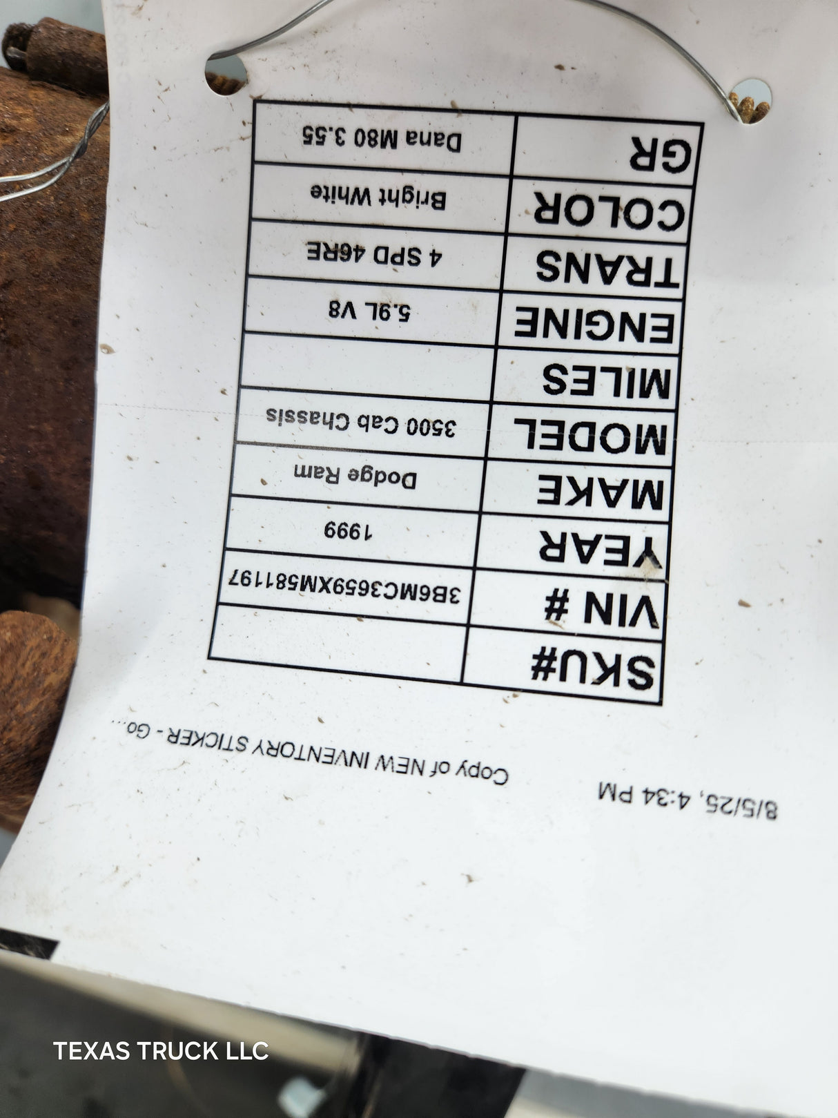 - 1996-1999 2nd Gen Dodge Ram 3500 Dually 2x4 Rear Axle 3.54 Ratio Cummins Diesel or Gas