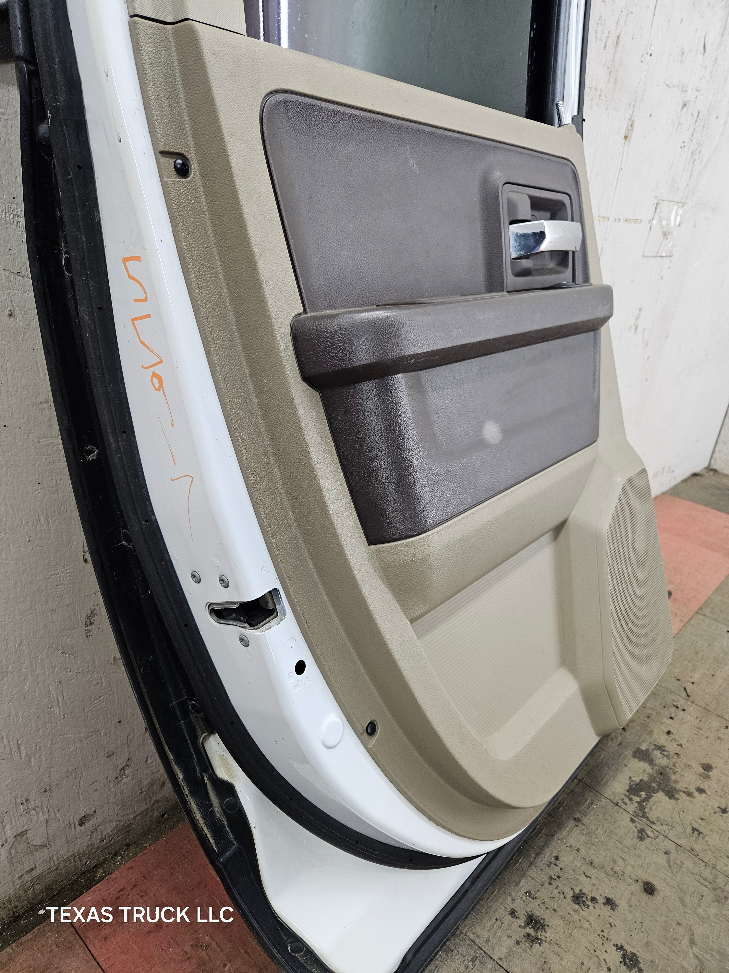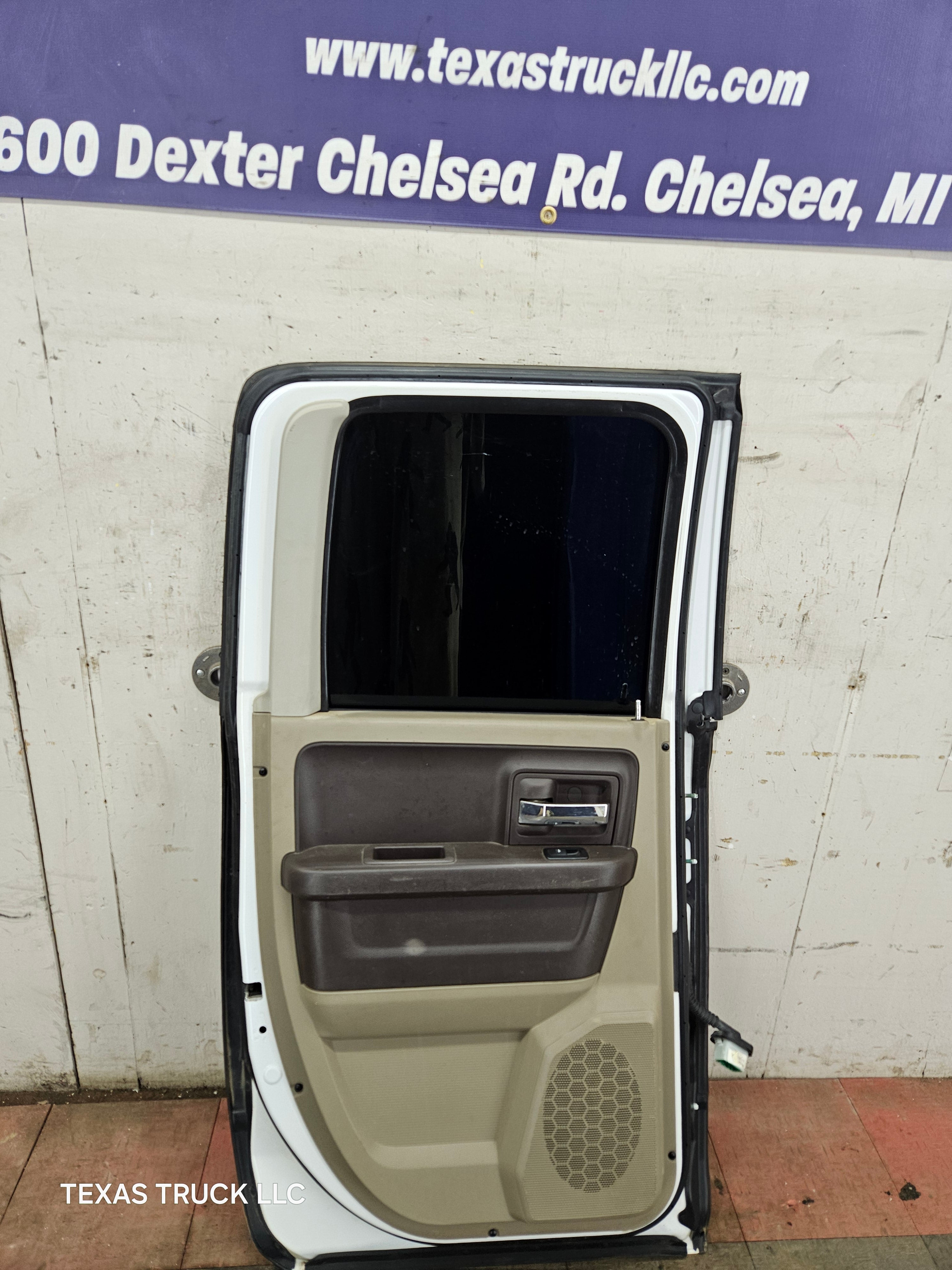 2009-2018 Dodge Ram 4th Gen Driver Side LH Rear Quad Cab Door 1500 2500 3500 4500 5500 - Bright White Clear Coat & Pebble Beige/Bark Brown