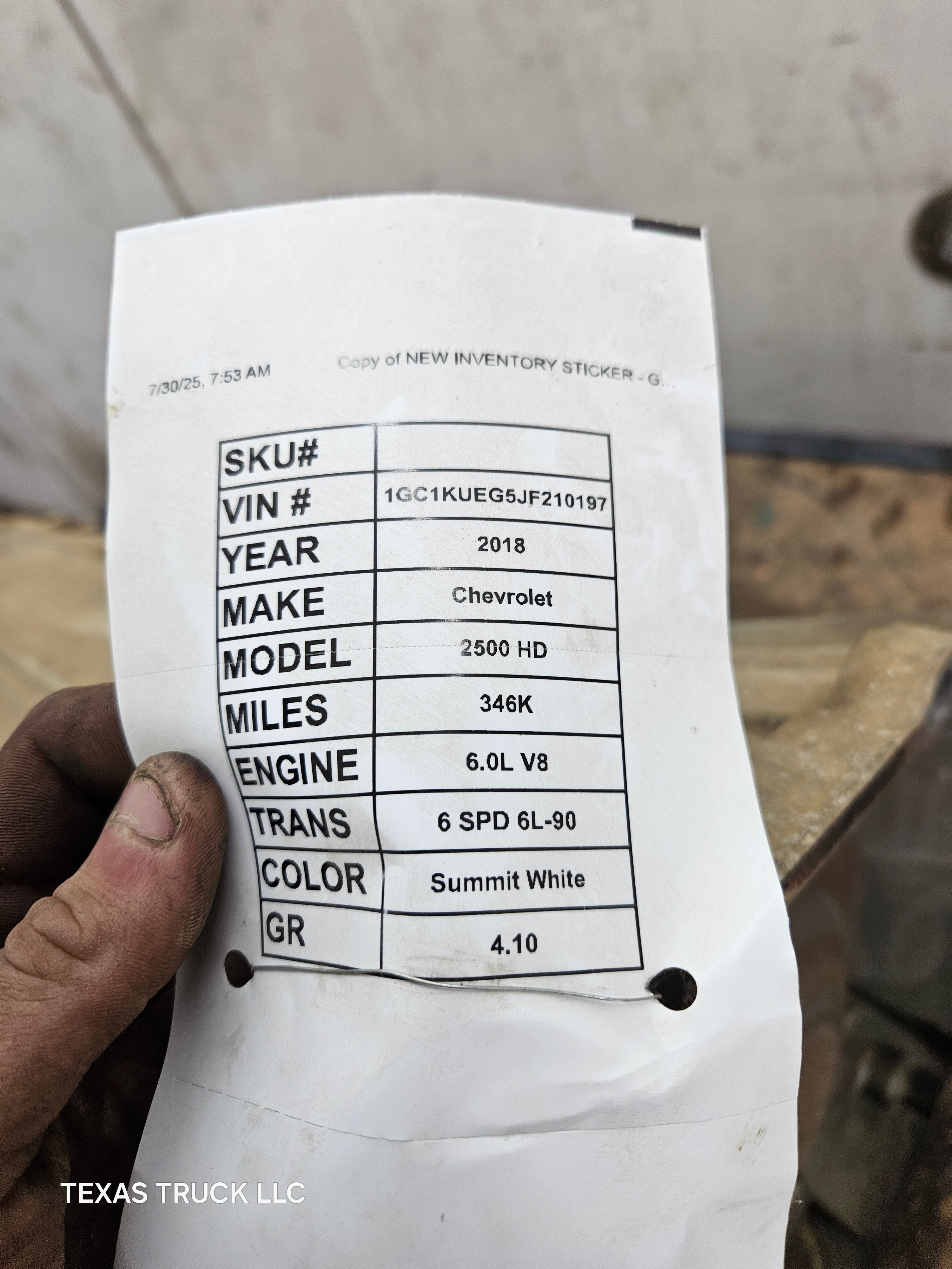 2017-2019 Chevrolet Silverado GMC Sierra 2500 3500HD 6L-90 6.0L TRANSMISSION 6 SPD 4wd