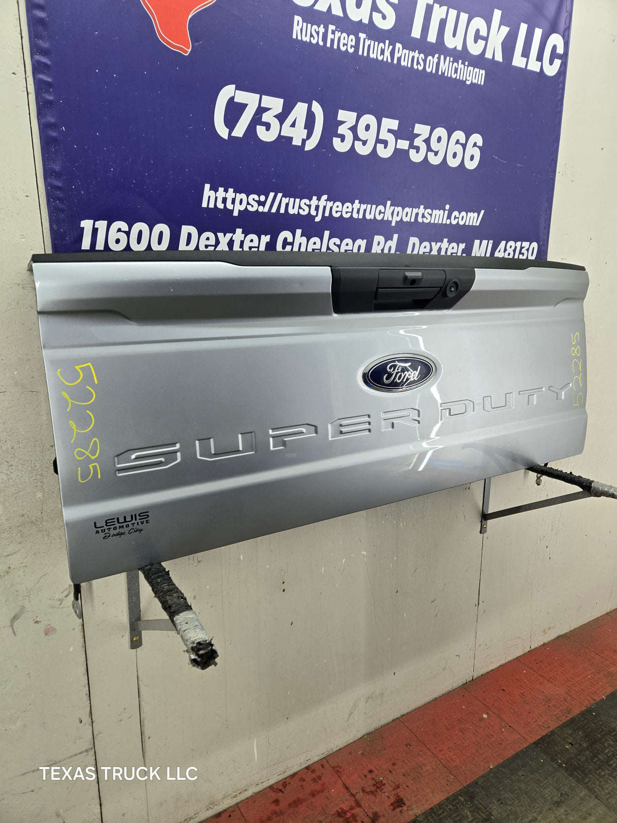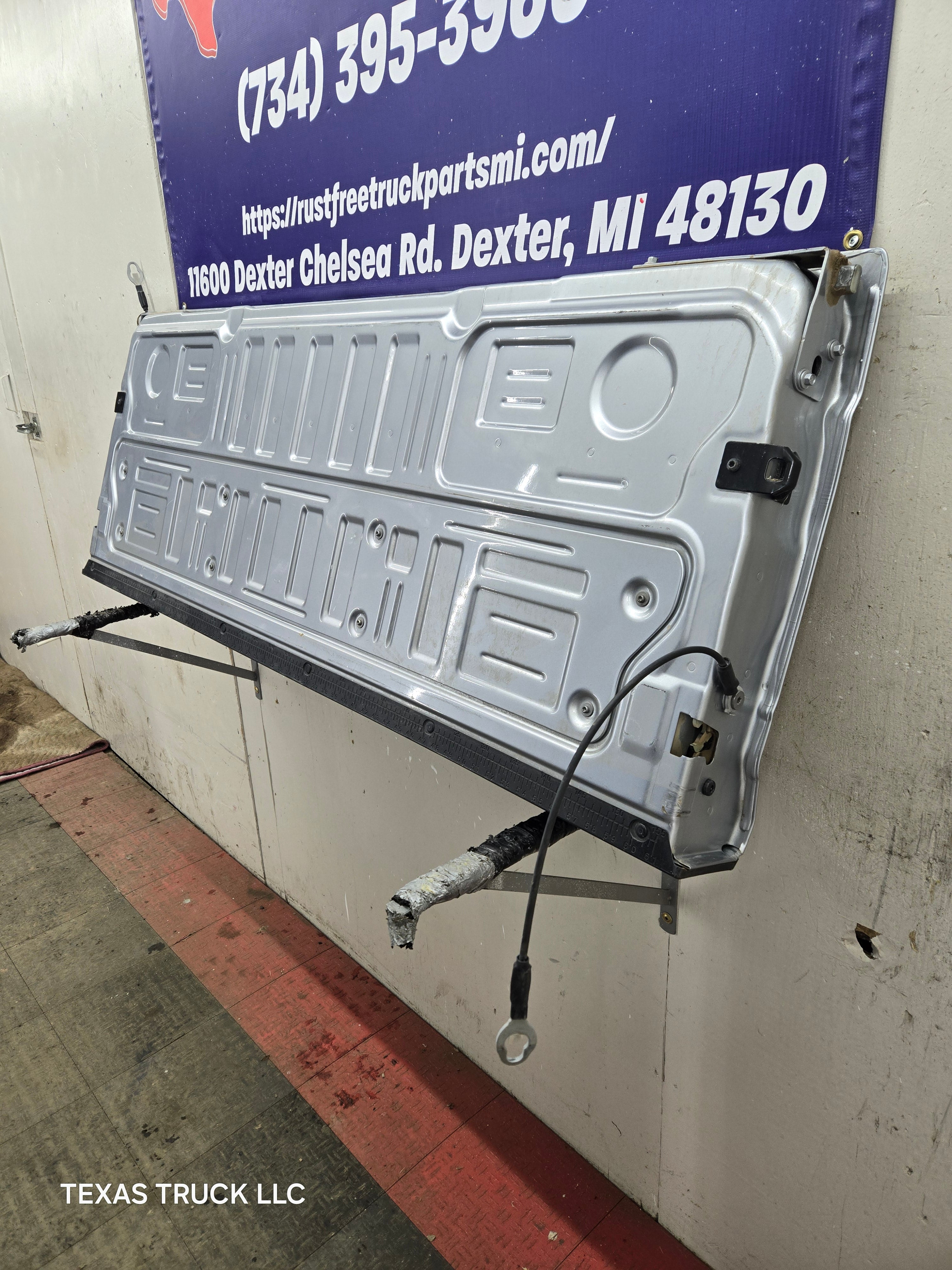 BRAND NEW TAKEOFF. Has the hole for the backup camera, but camera was removed as well as the latches, very easy to swap this stuff over from your gate.