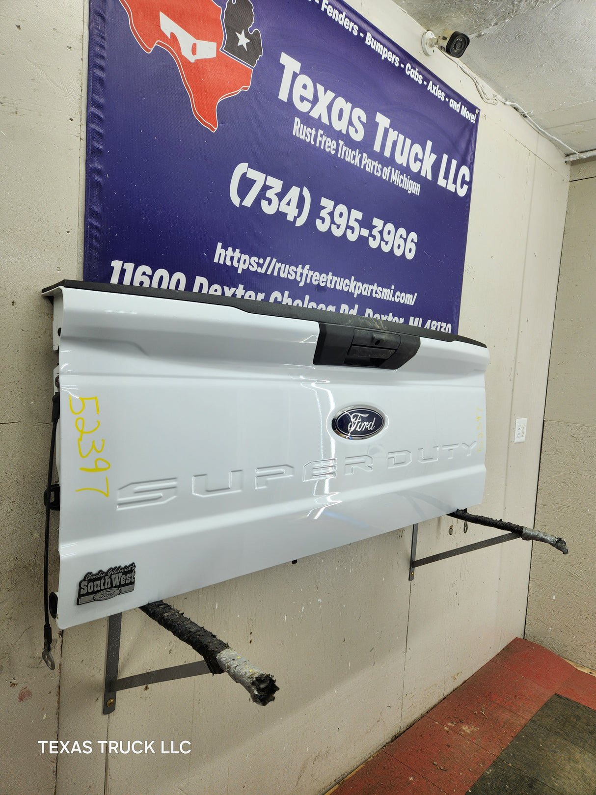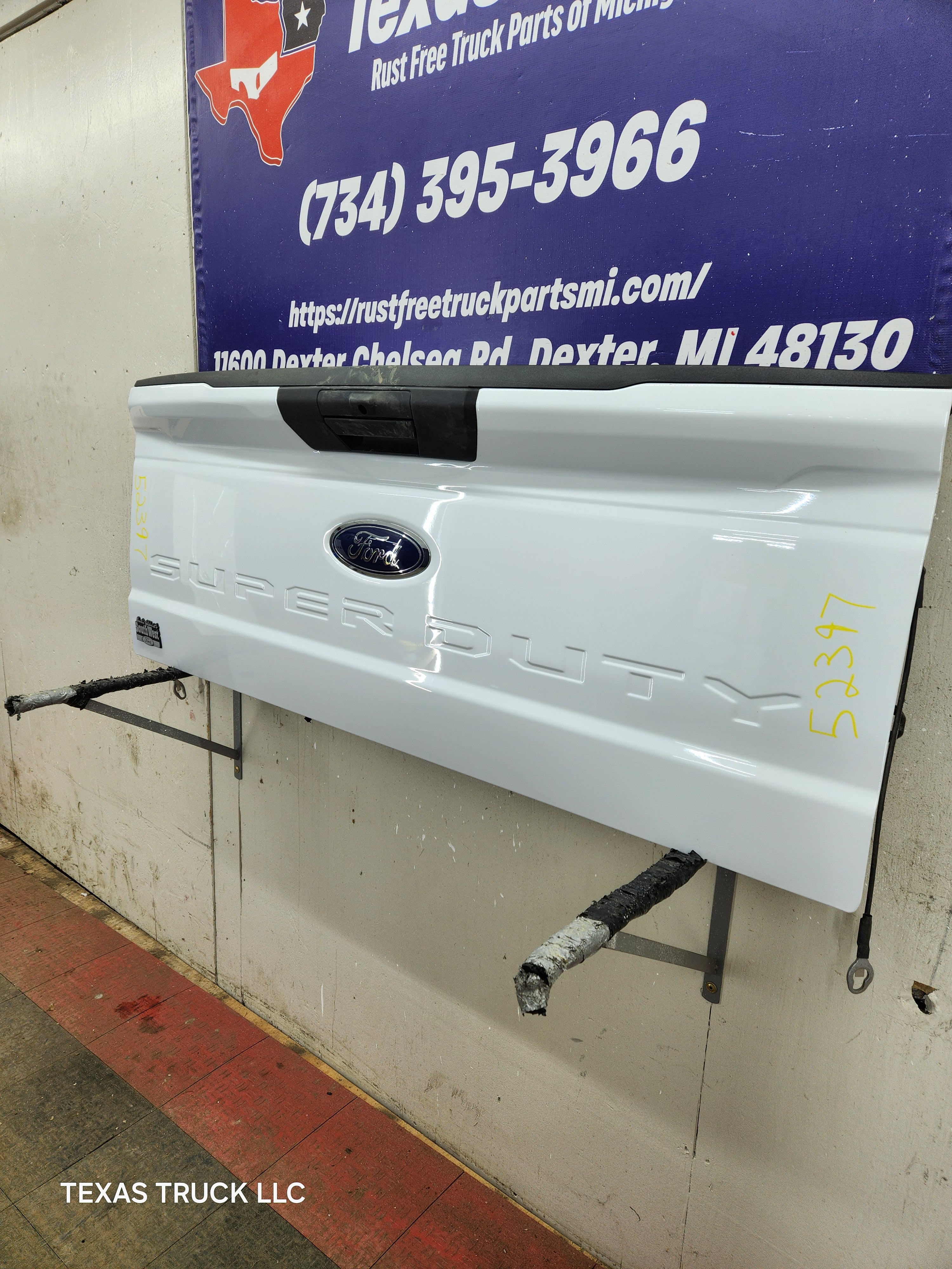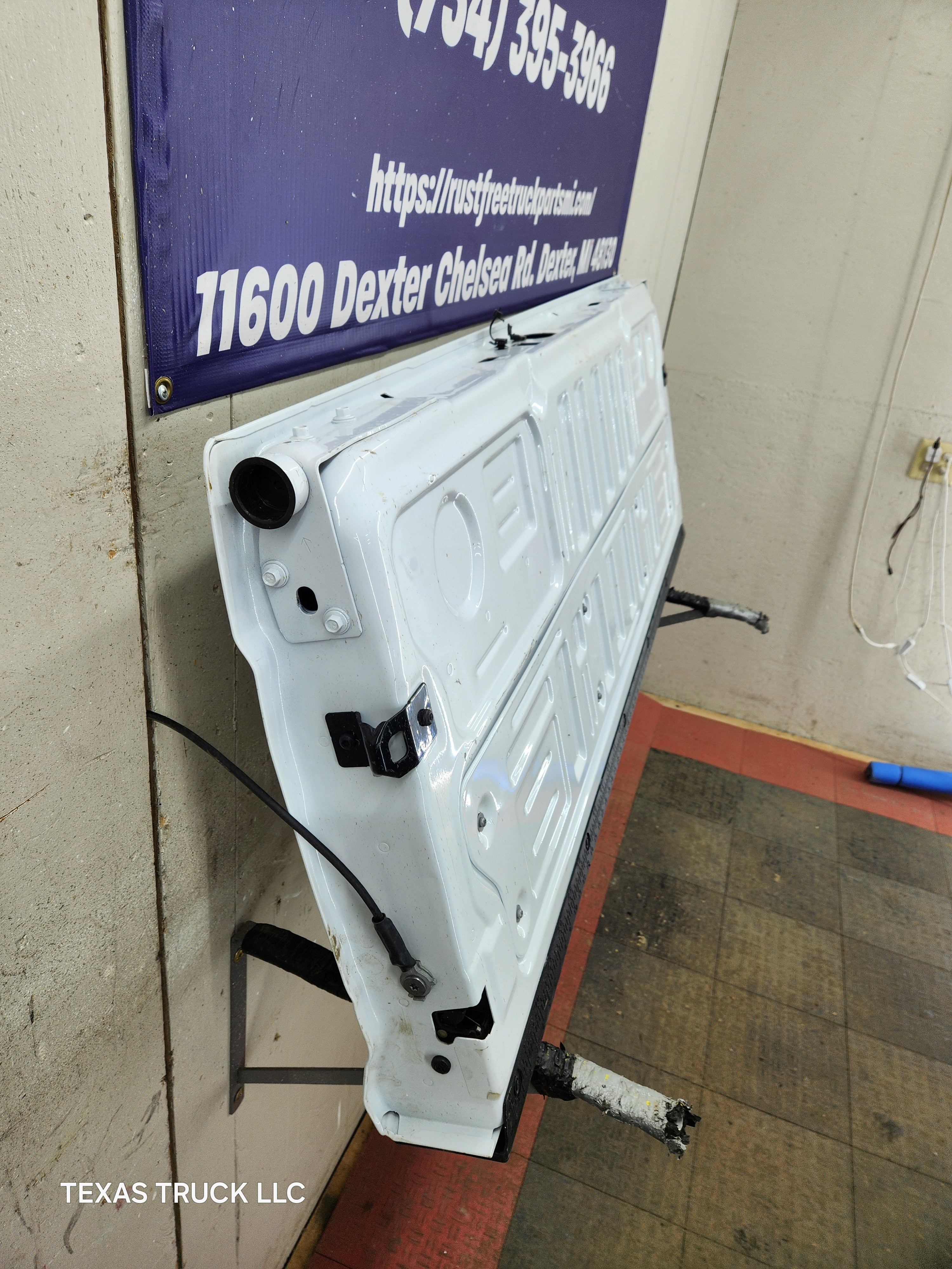 BRAND NEW TAKEOFF. Has the hole for the backup camera, but camera was removed as well as the latches, very easy to swap this stuff over from your gate.