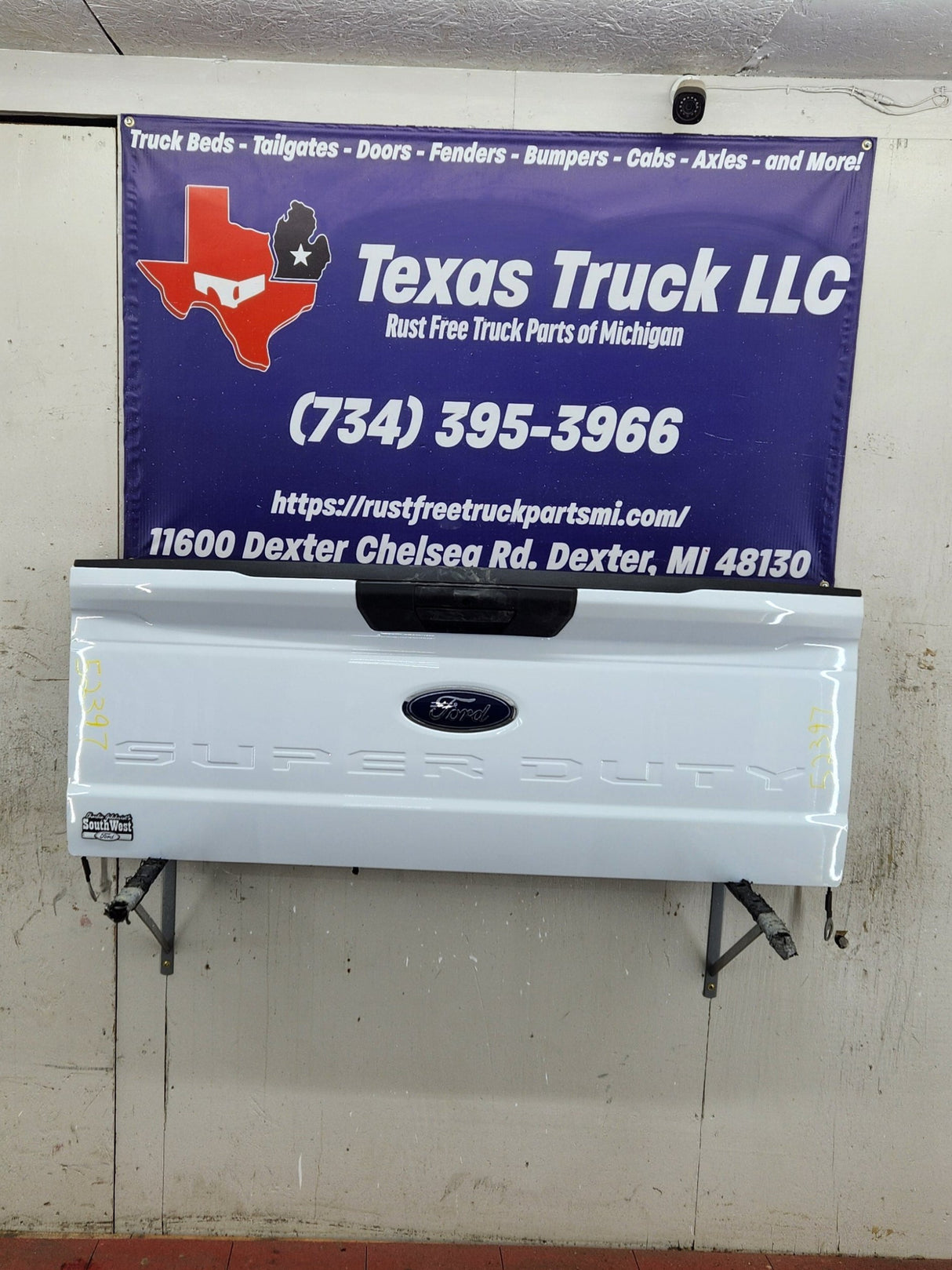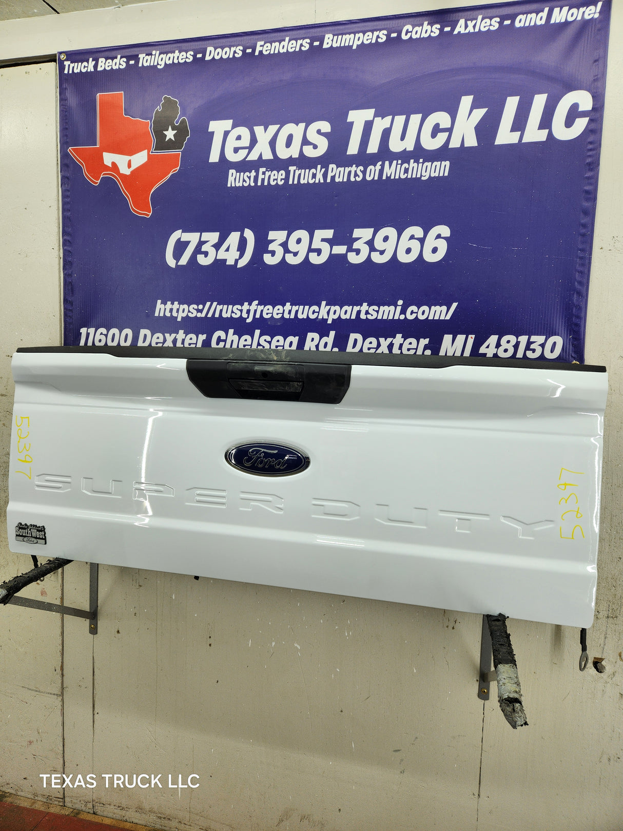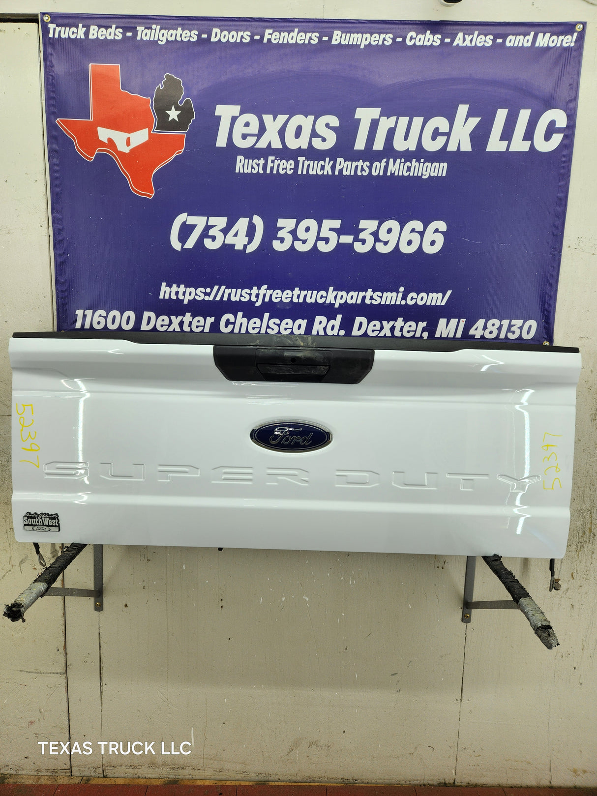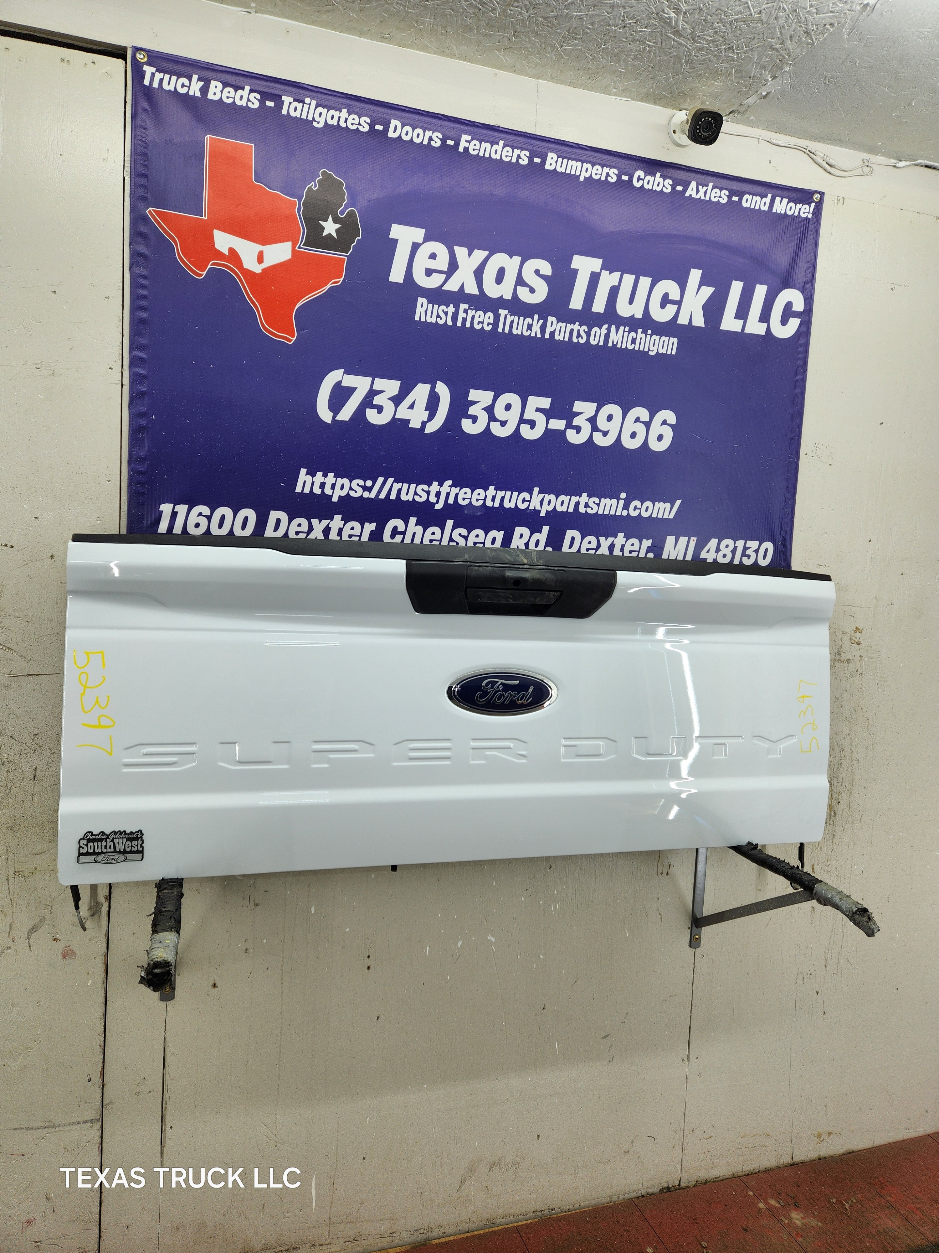 BRAND NEW TAKEOFF. Has the hole for the backup camera, but camera was removed as well as the latches, very easy to swap this stuff over from your gate.