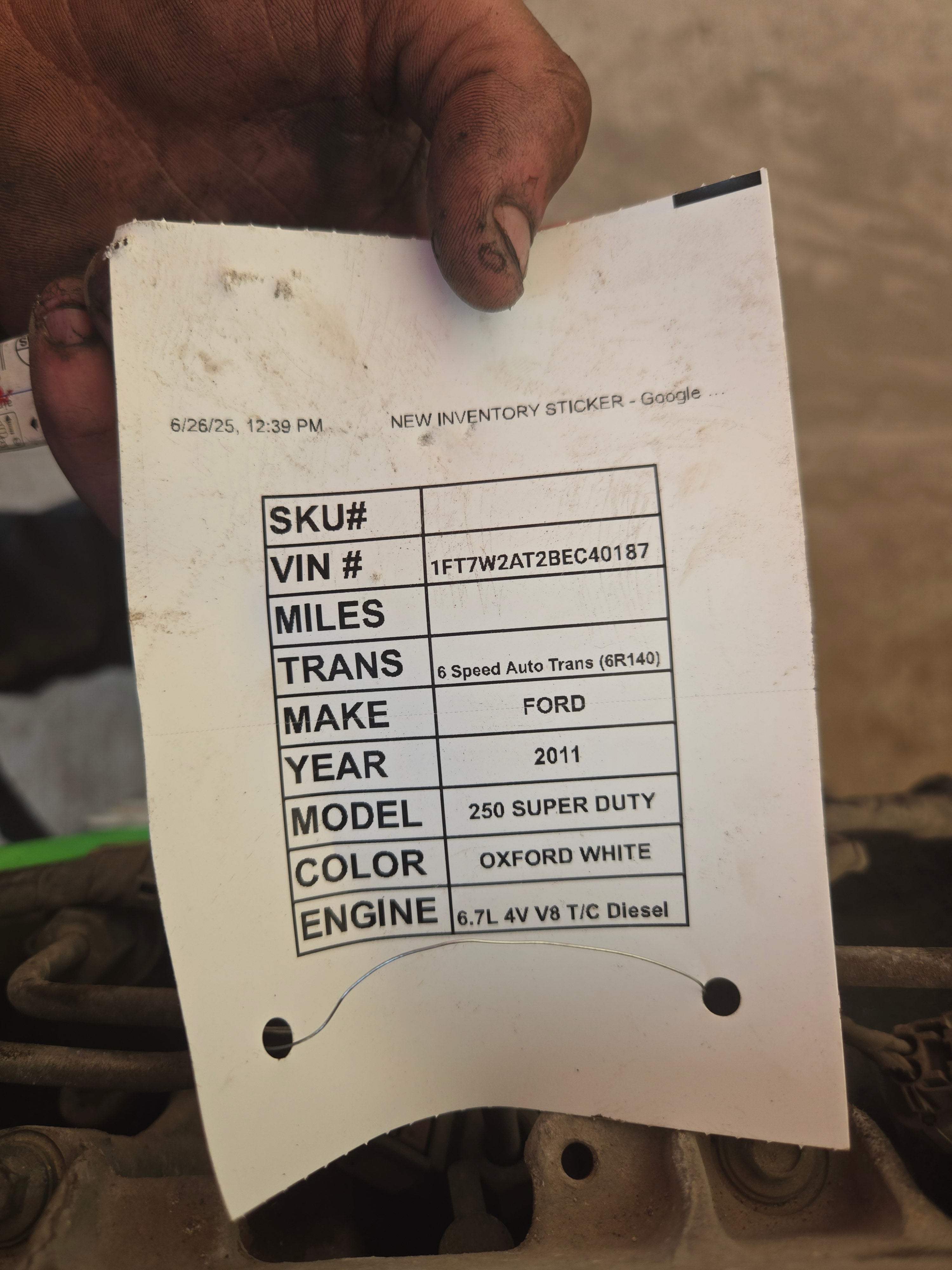 Pulled from a 2012 F350 PICKUP, UNKNOWN RUNNING CONDITION!
