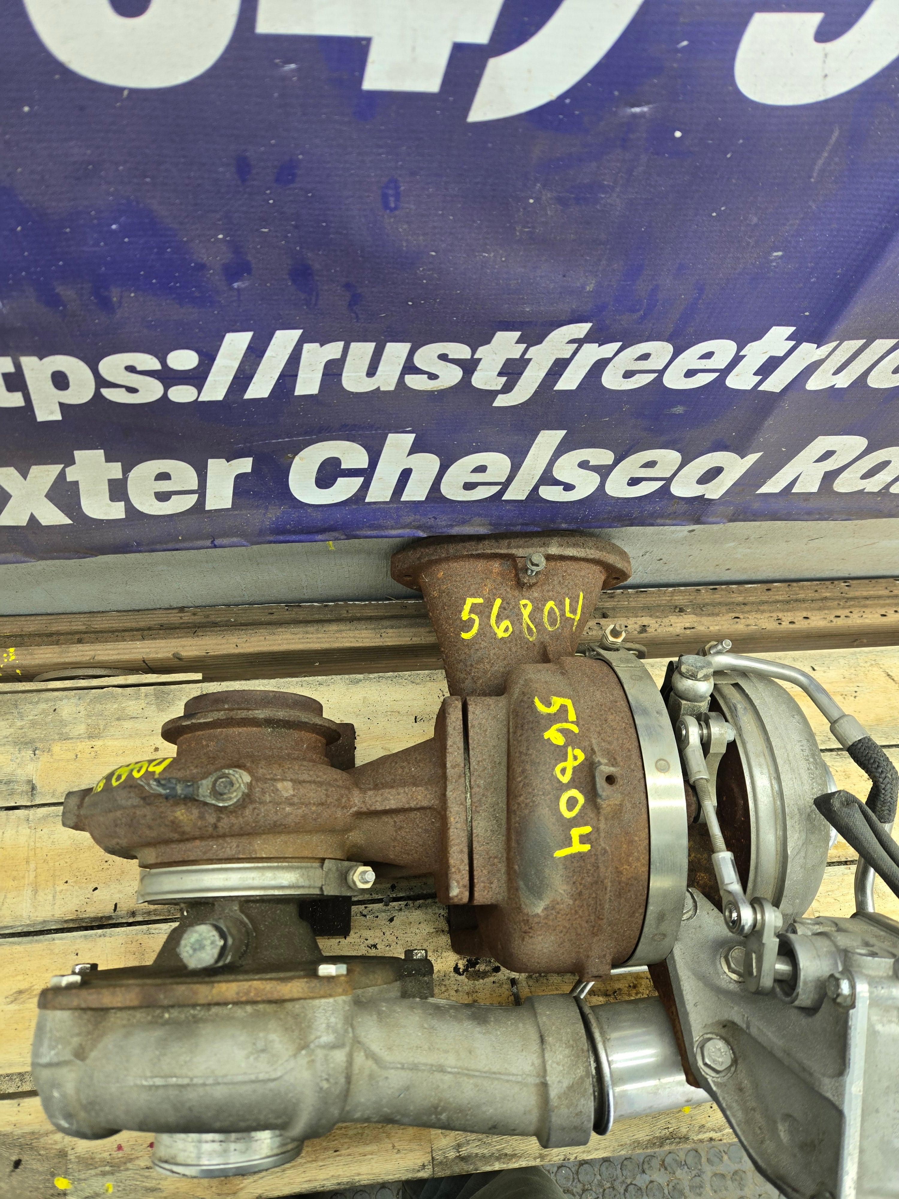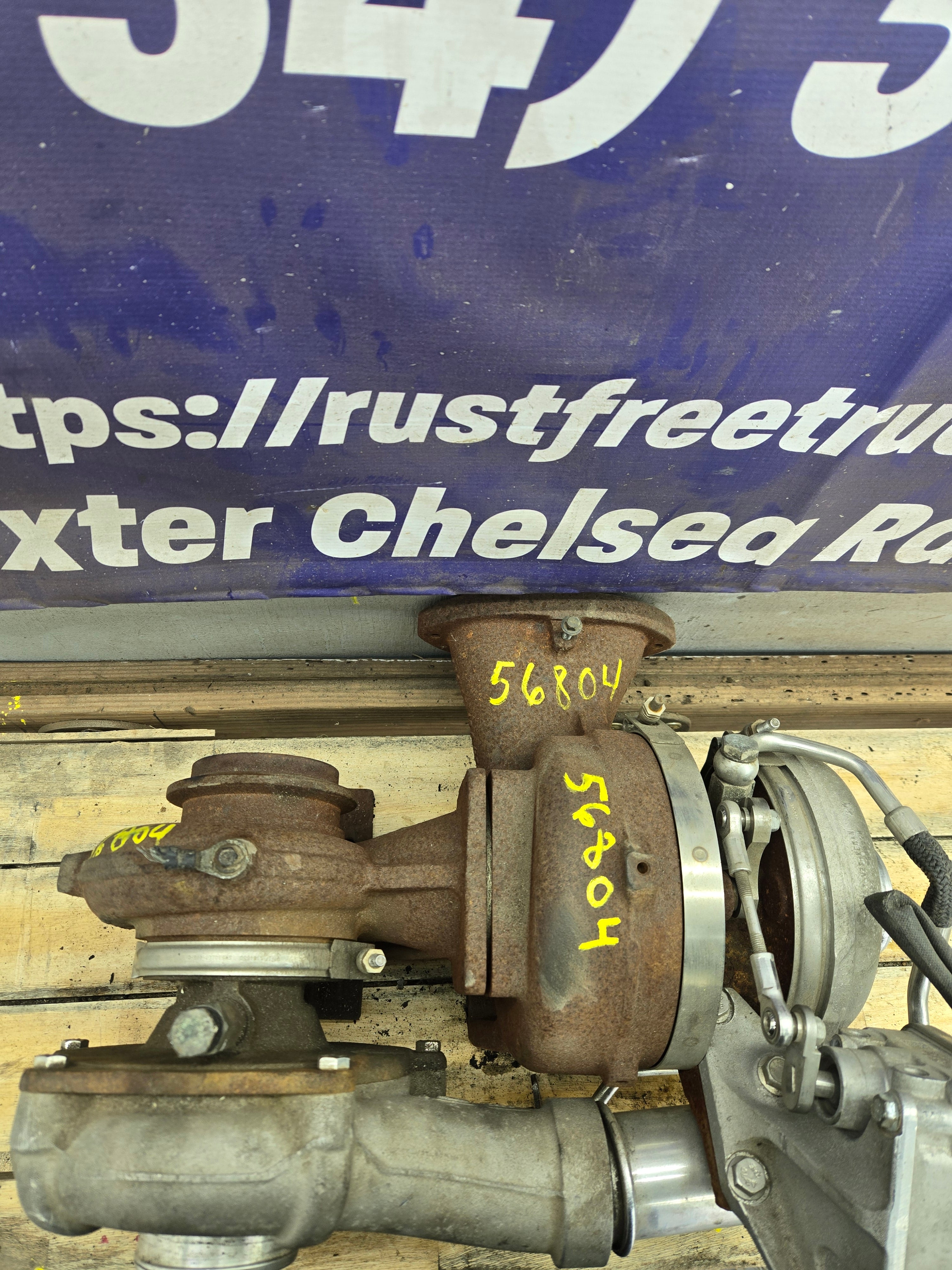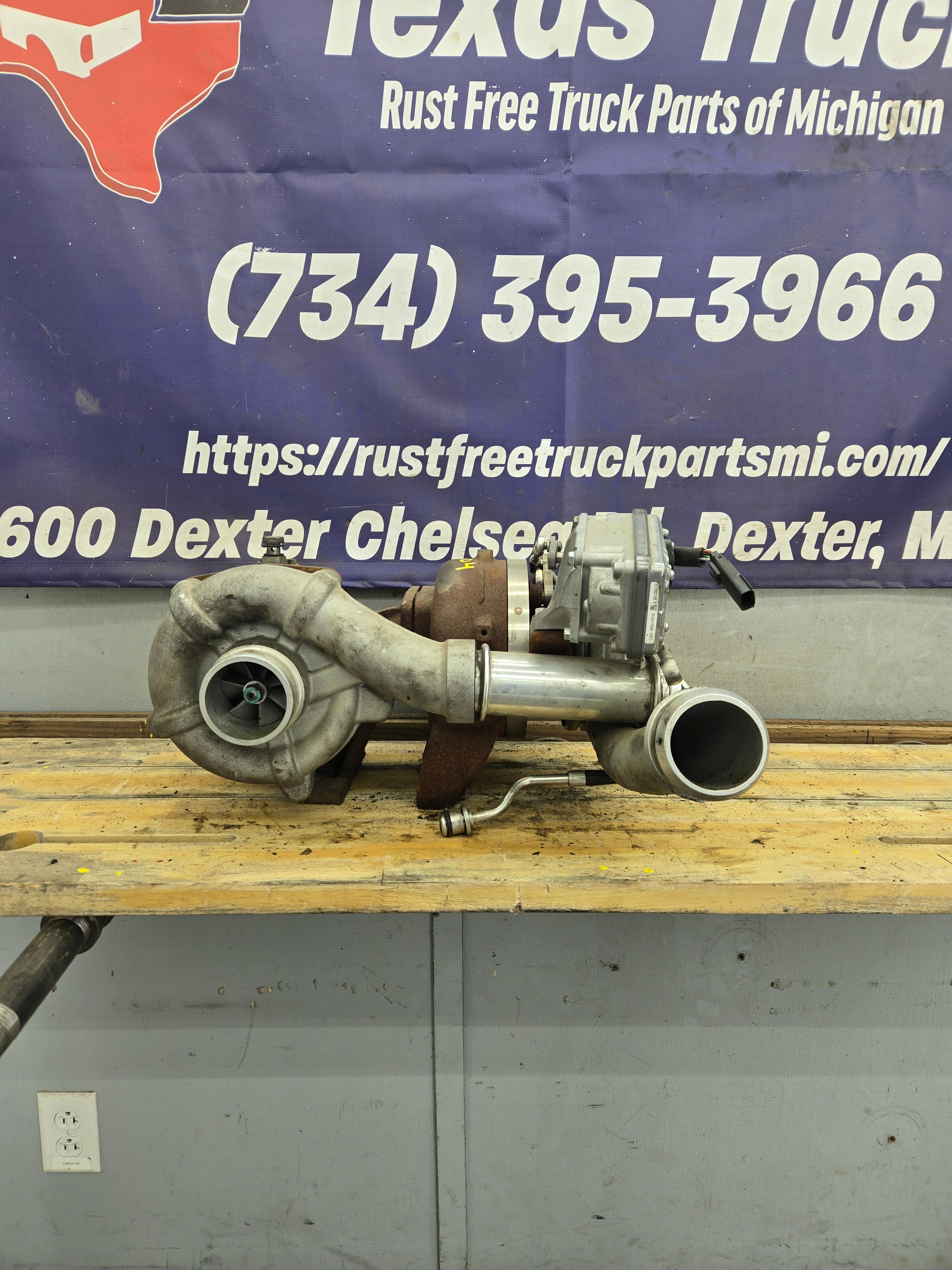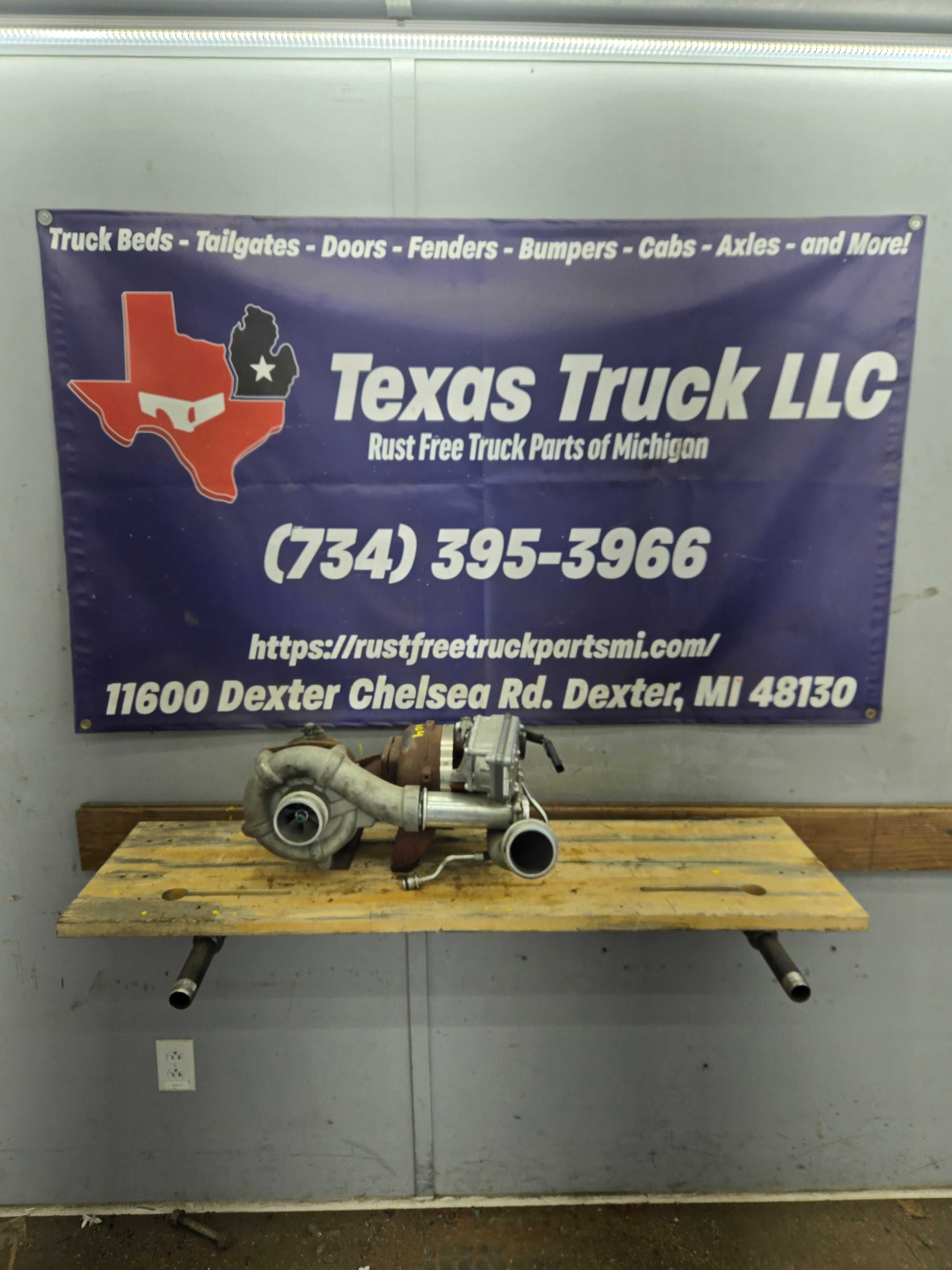 Used factory compound/twin turbos for 2008-2010 Ford Super Duty's equipped with the 6.4L Power Stroke diesel.