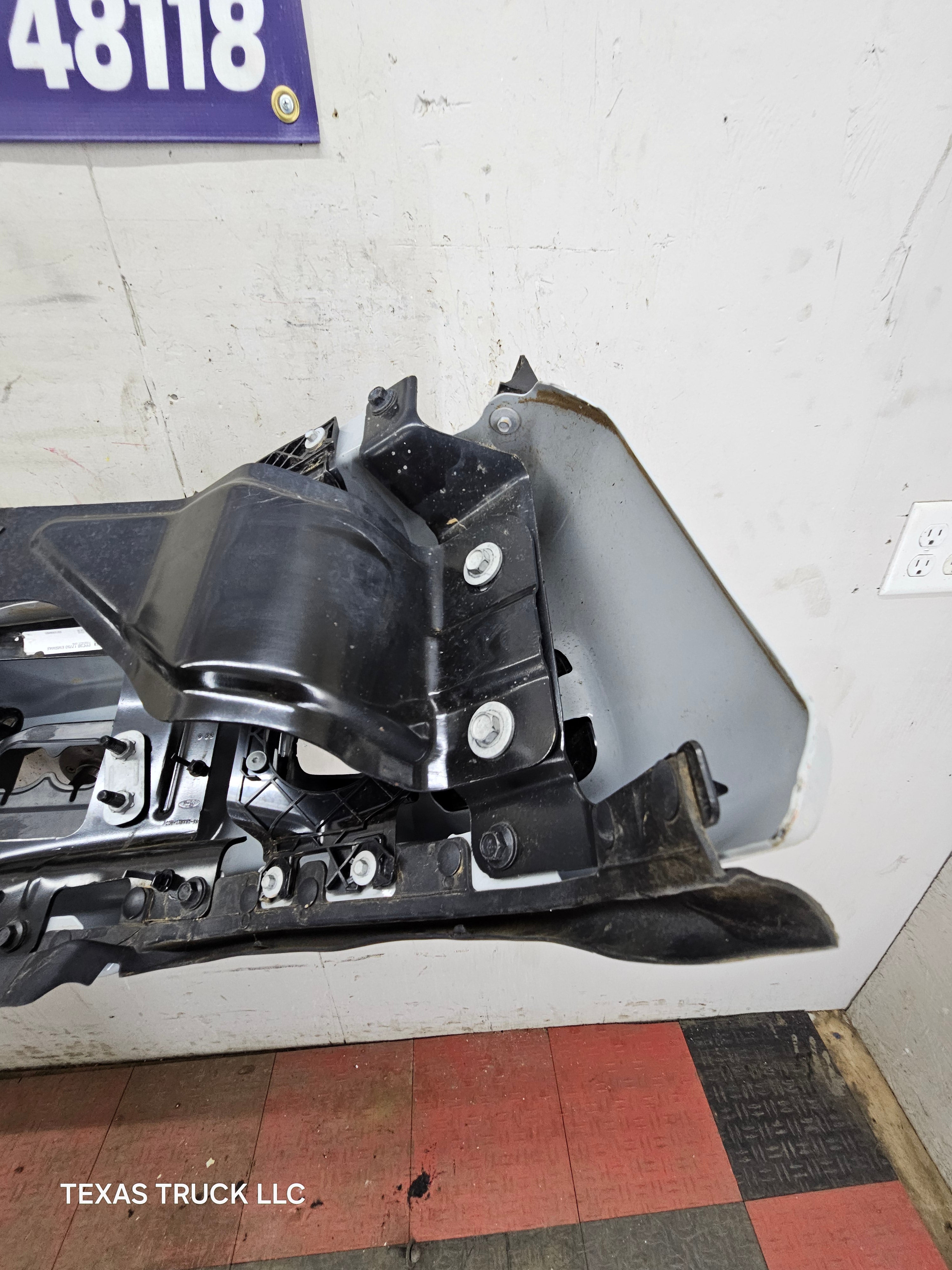 - 2023-2025 Ford F250 Super Duty Bumper, with fog lamps and parking aid sensors.