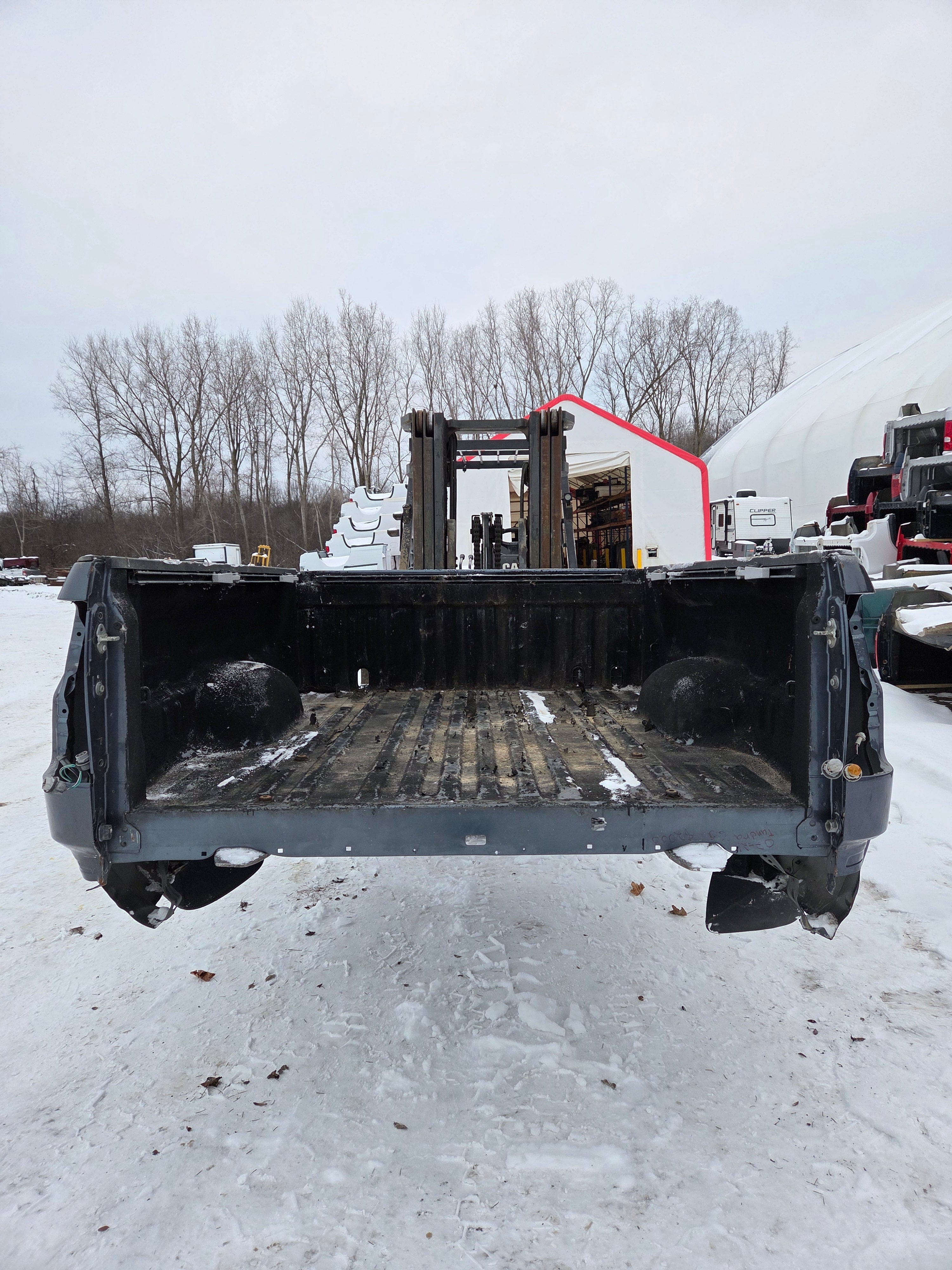 - All truck beds ship via insured flatbed trailer to business or residential locations. Truck beds can be unloaded with just about any piece of equipment or 1-3 guys, they only weigh 3-400 lbs.