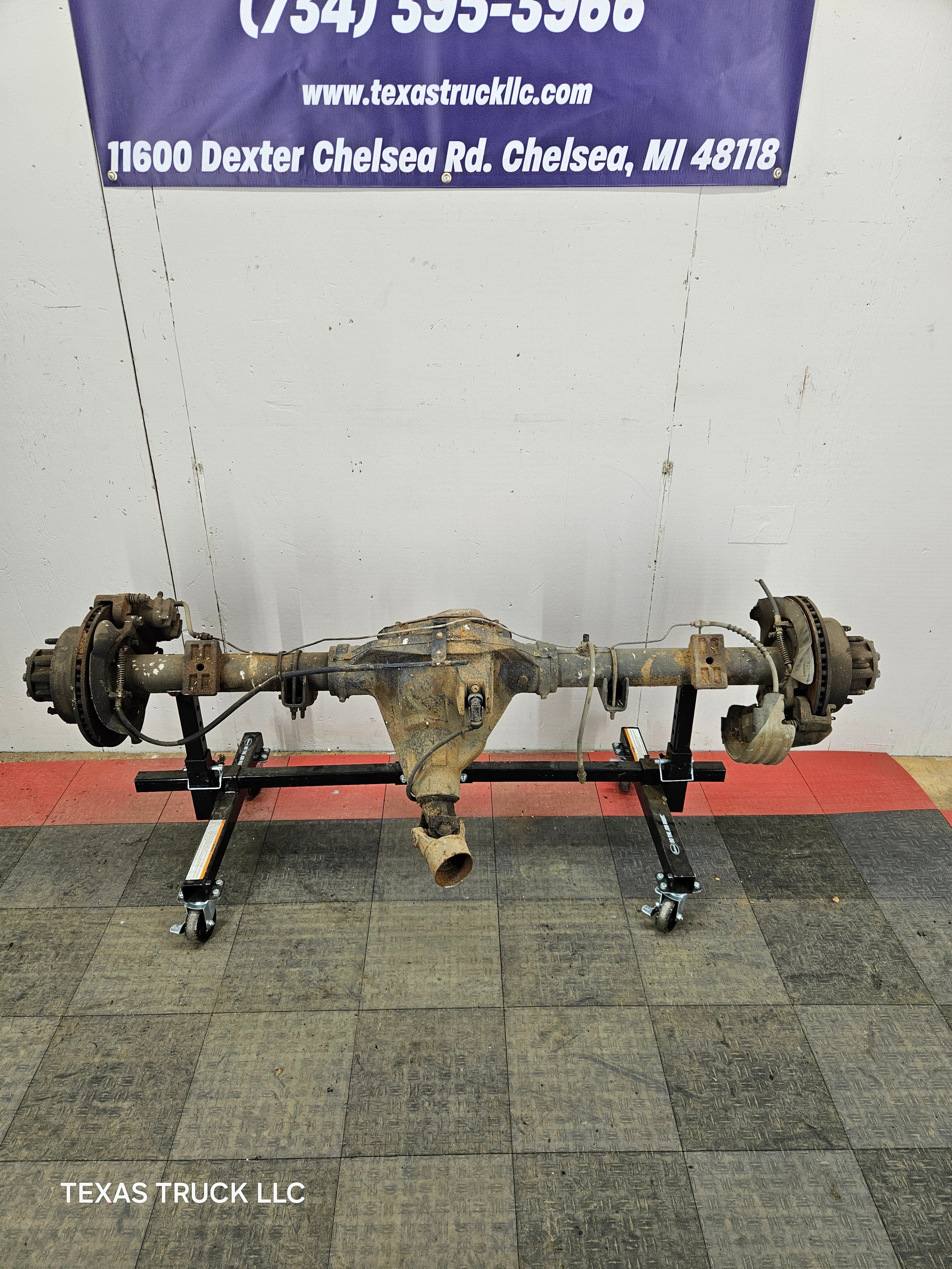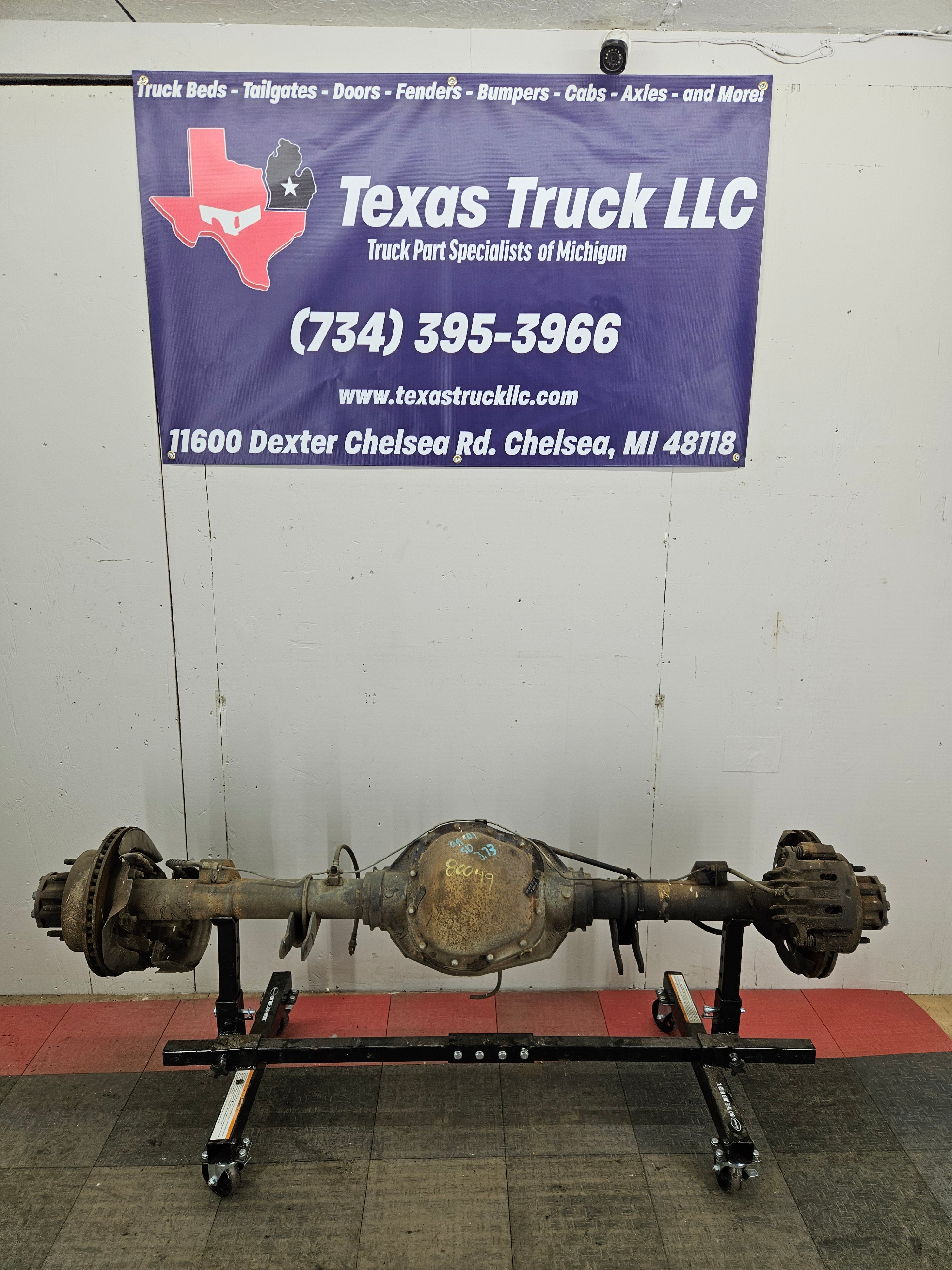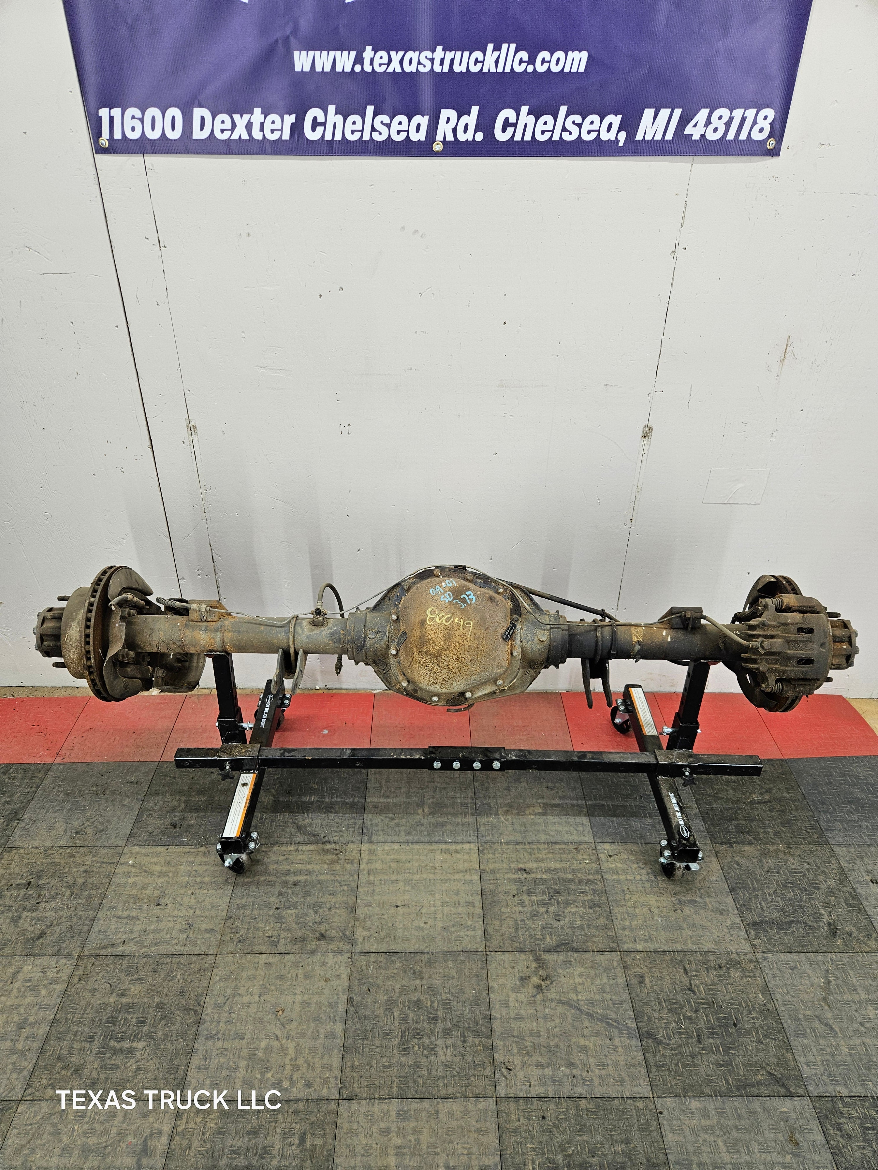 Ford Super Duty 8 lug, 8 x 170 lug pattern, used, single rear wheel (SRW) rear axle with 3.73 gear ratio.