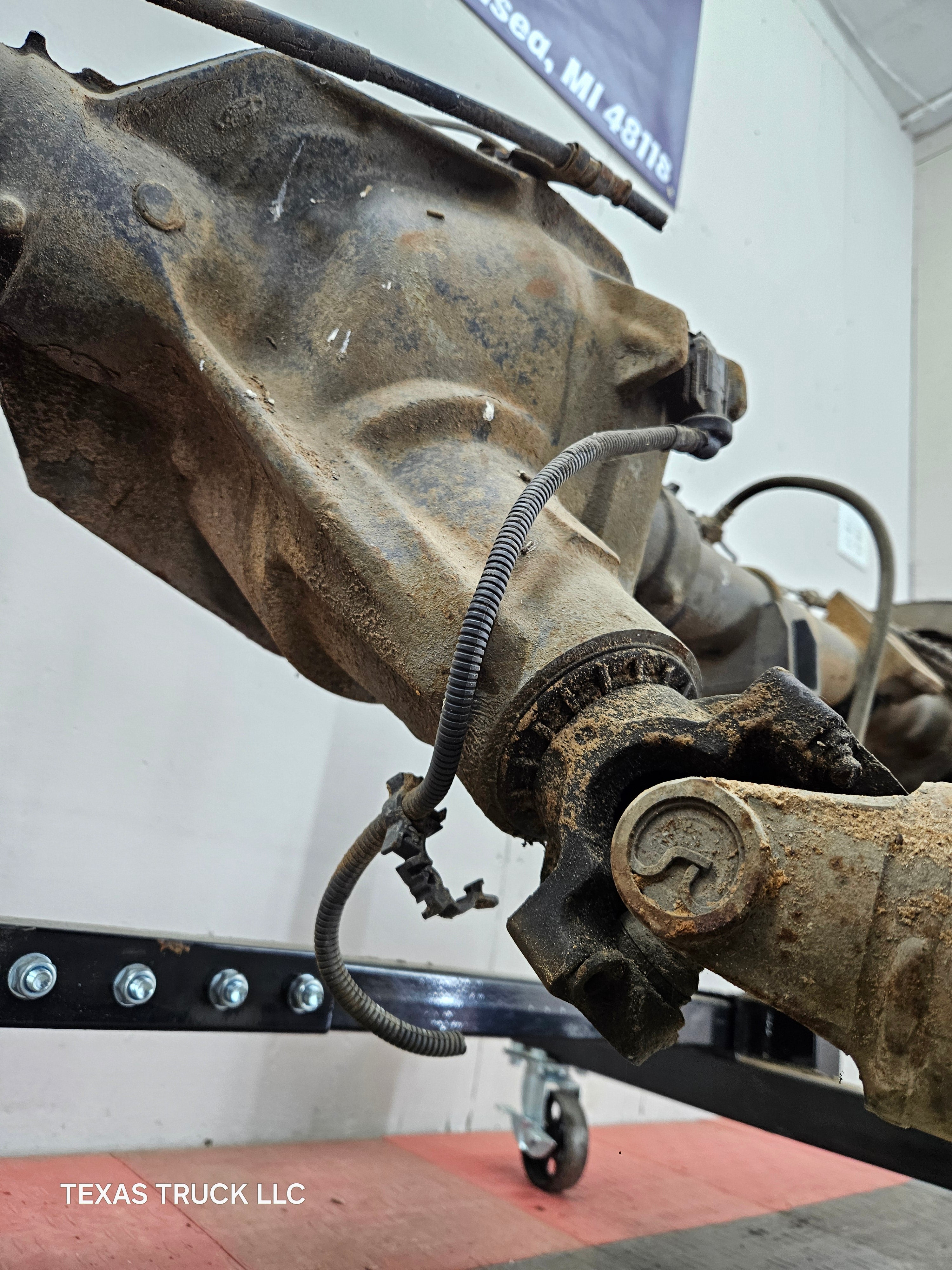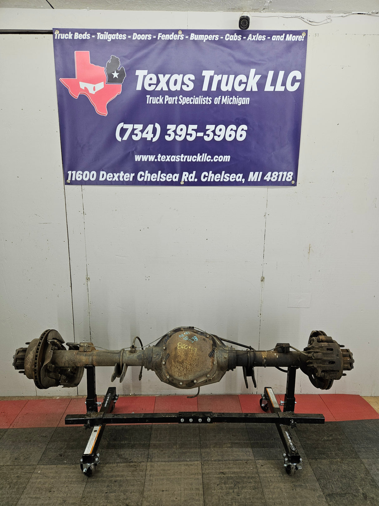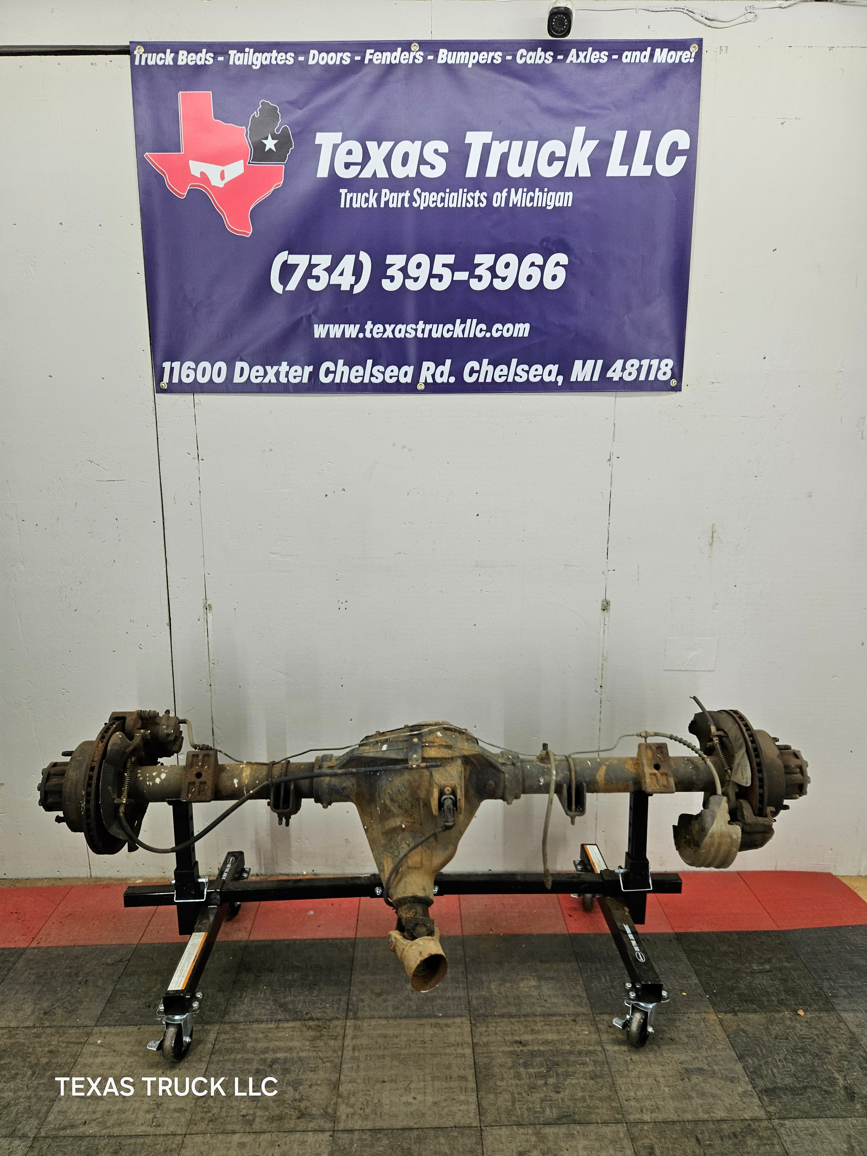 Ford Super Duty 8 lug, 8 x 170 lug pattern, used, single rear wheel (SRW) rear axle with 3.73 gear ratio.
