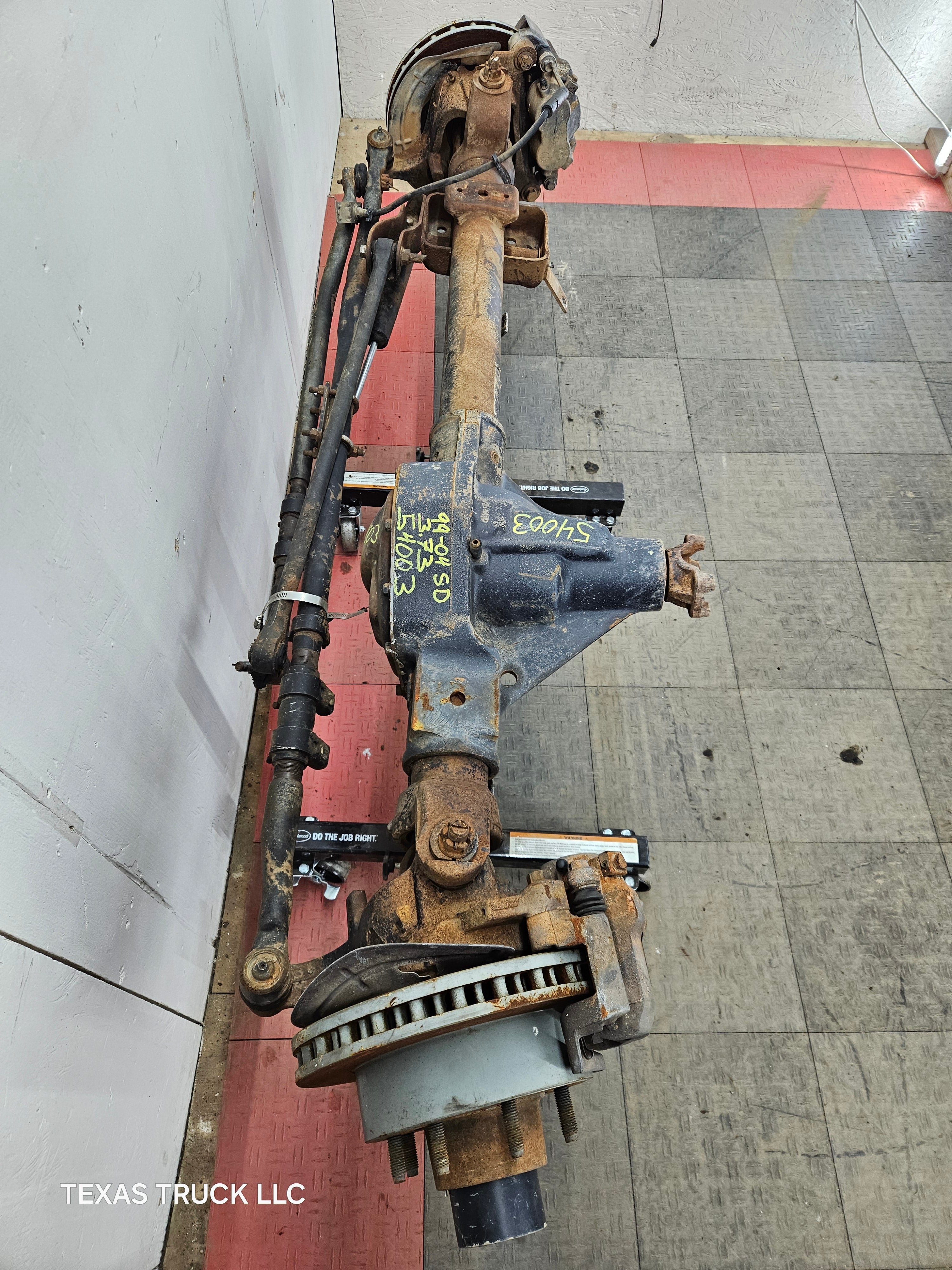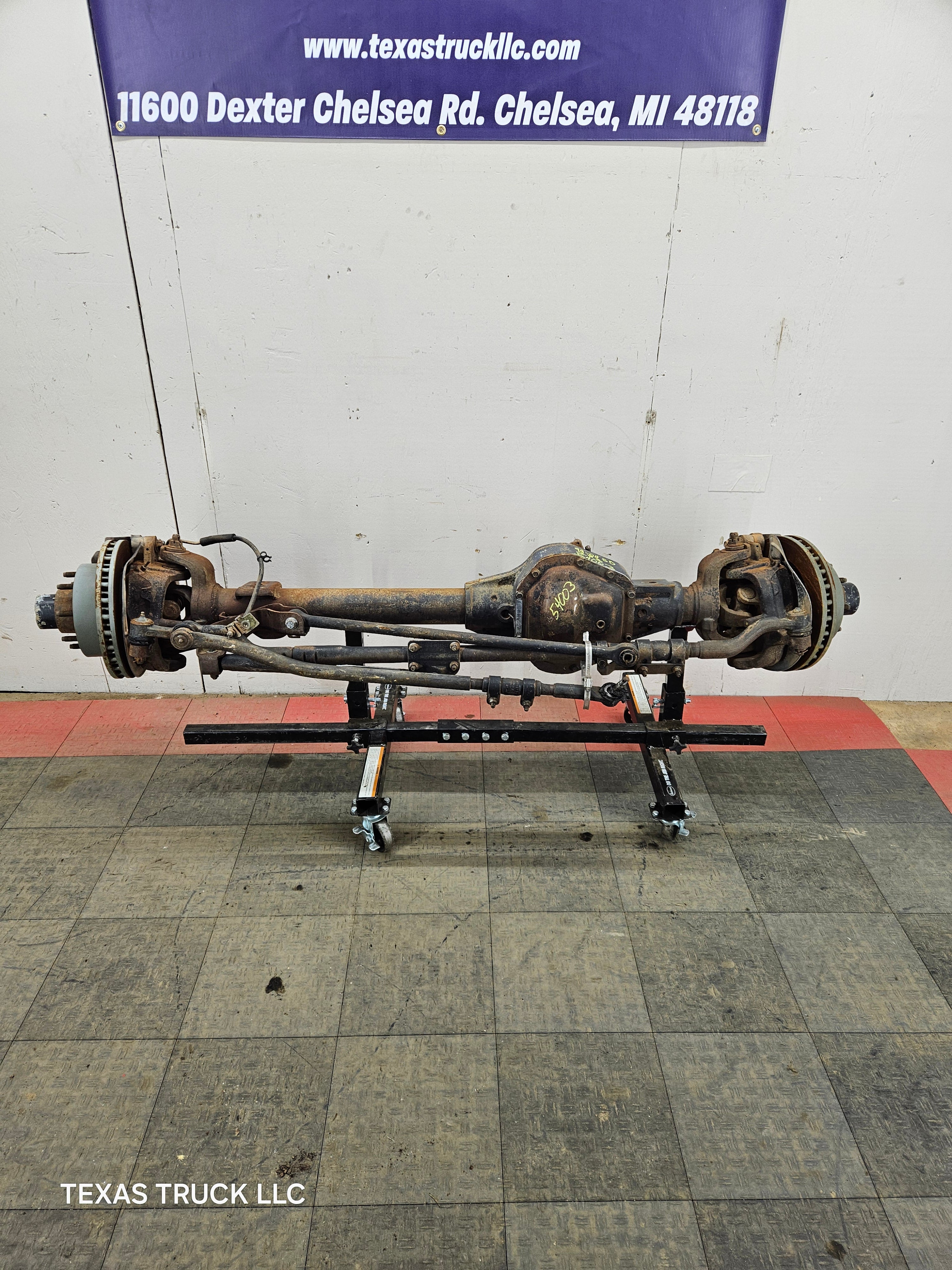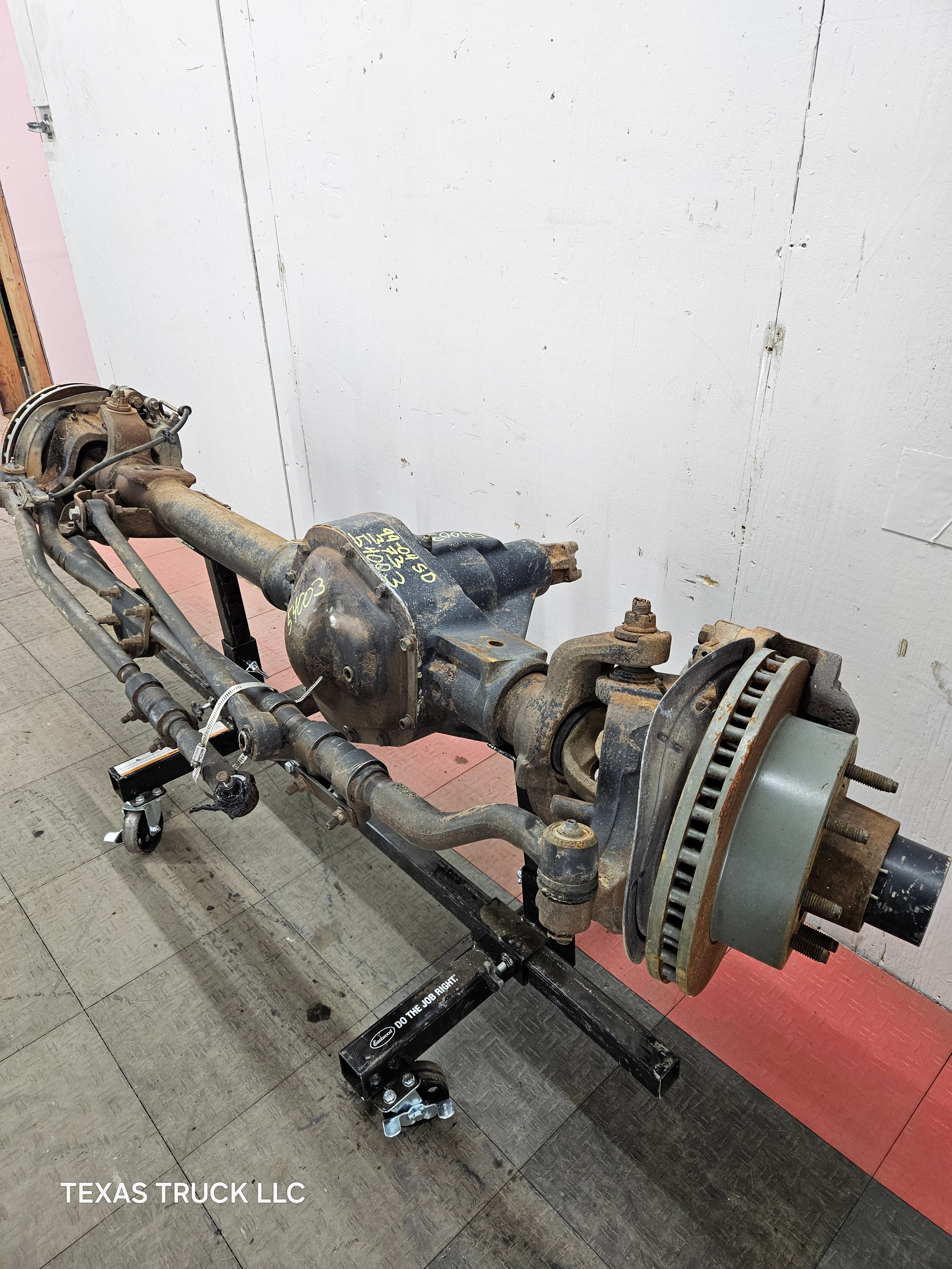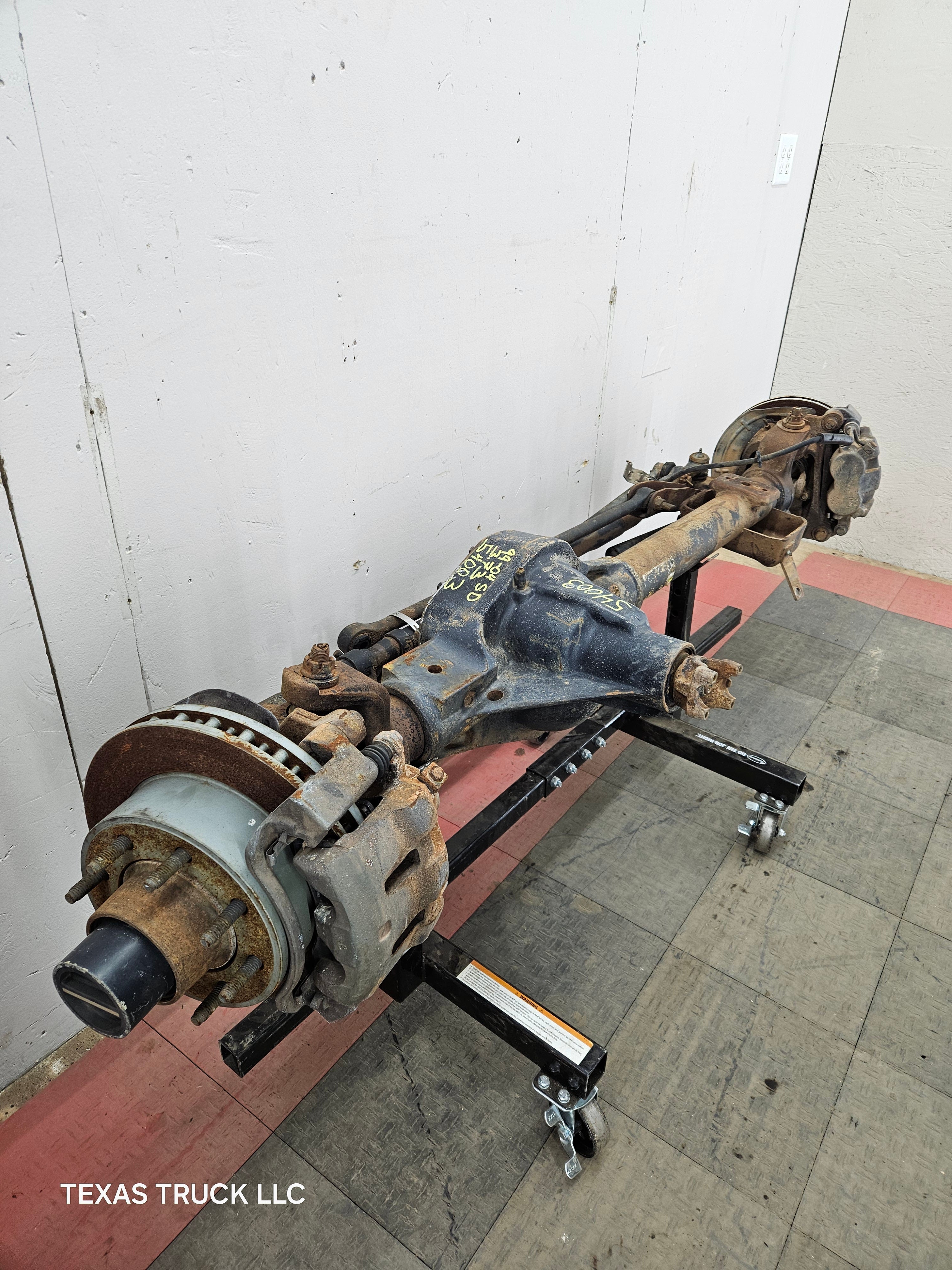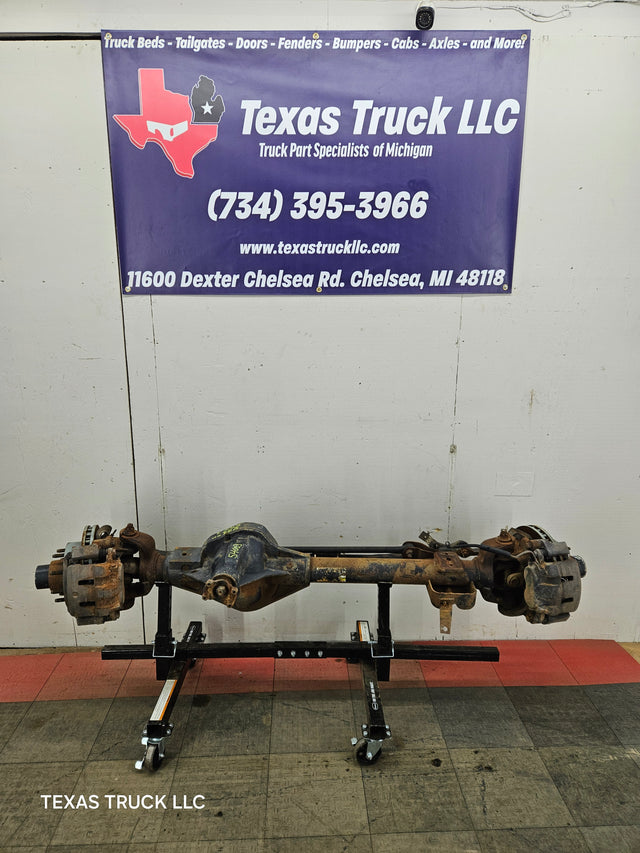 Ford Super Duty 8 lug, 8 x 170 lug pattern, used, single rear wheel (SRW) front axle with 3.73 gear ratio.