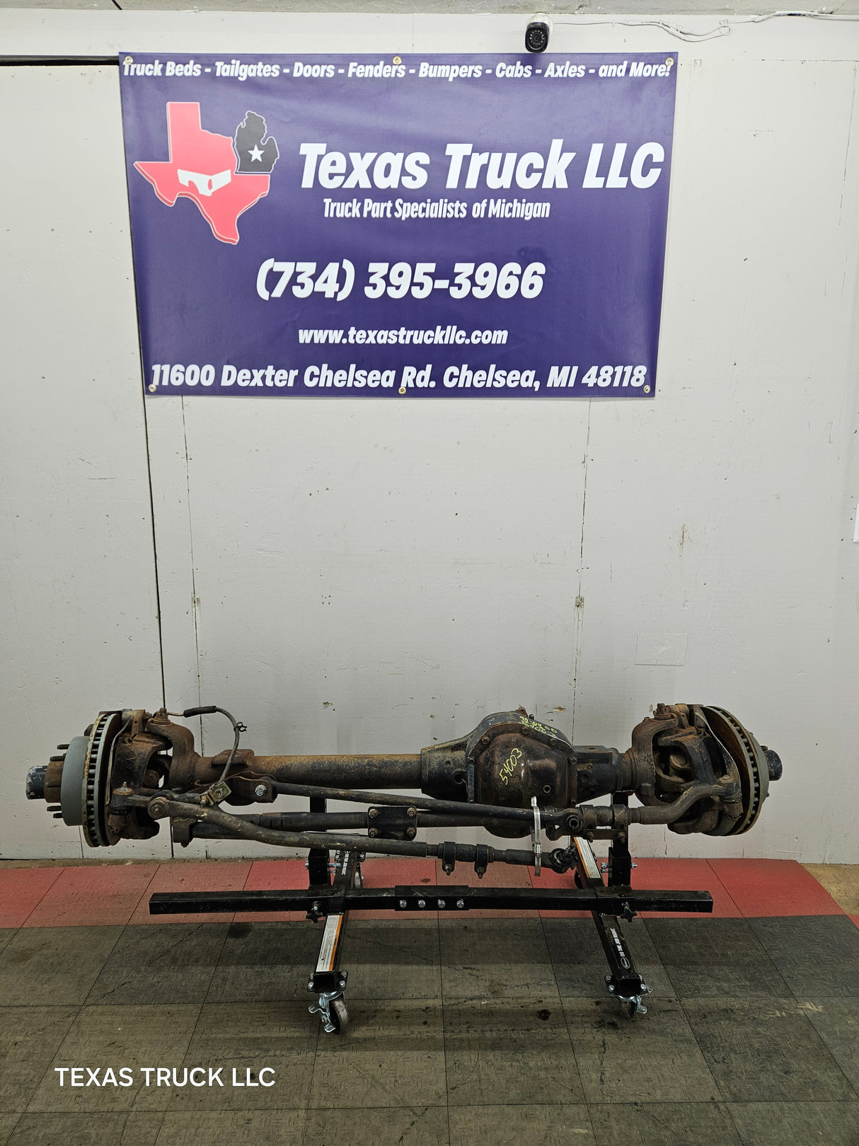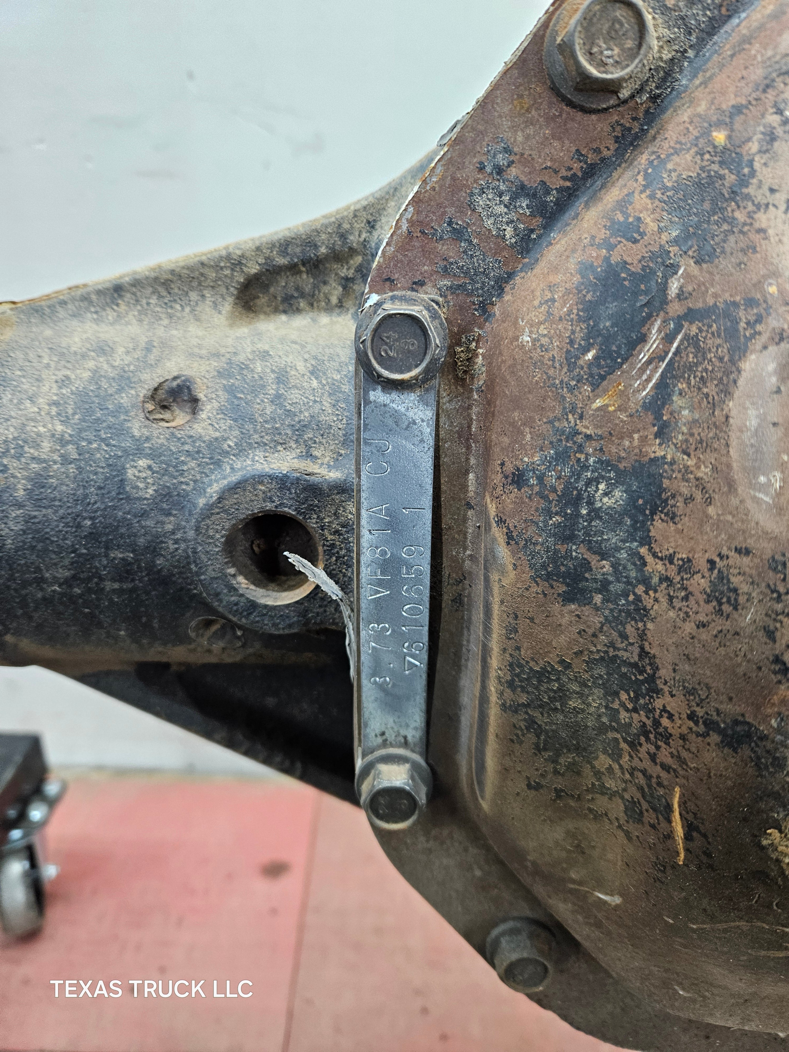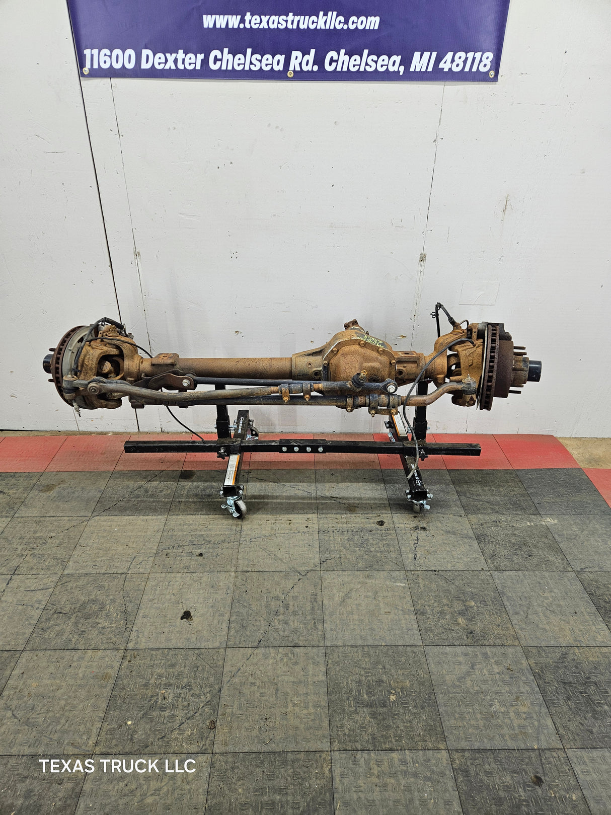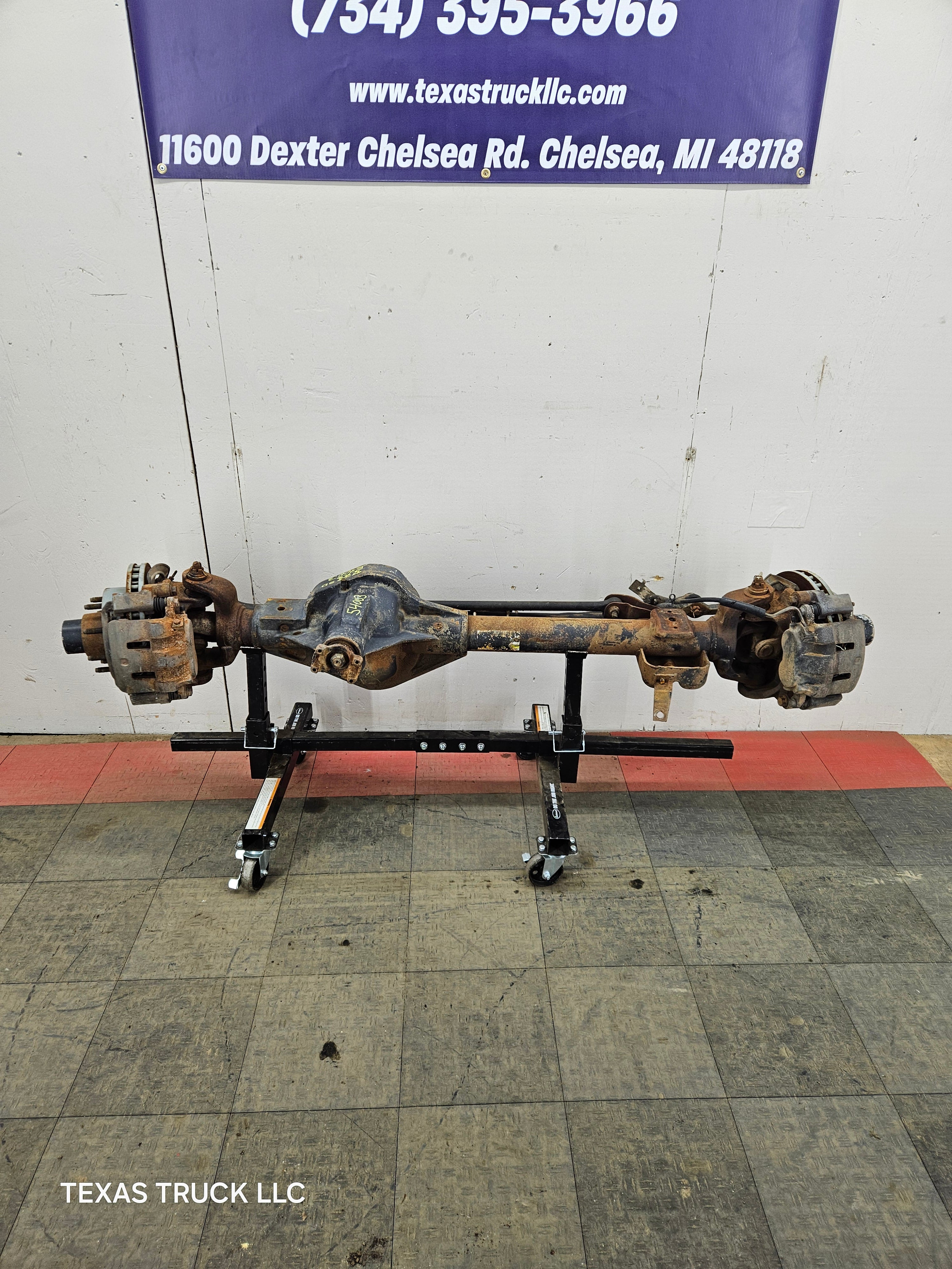 Ford Super Duty 8 lug, 8 x 170 lug pattern, used, single rear wheel (SRW) front axle with 3.73 gear ratio.