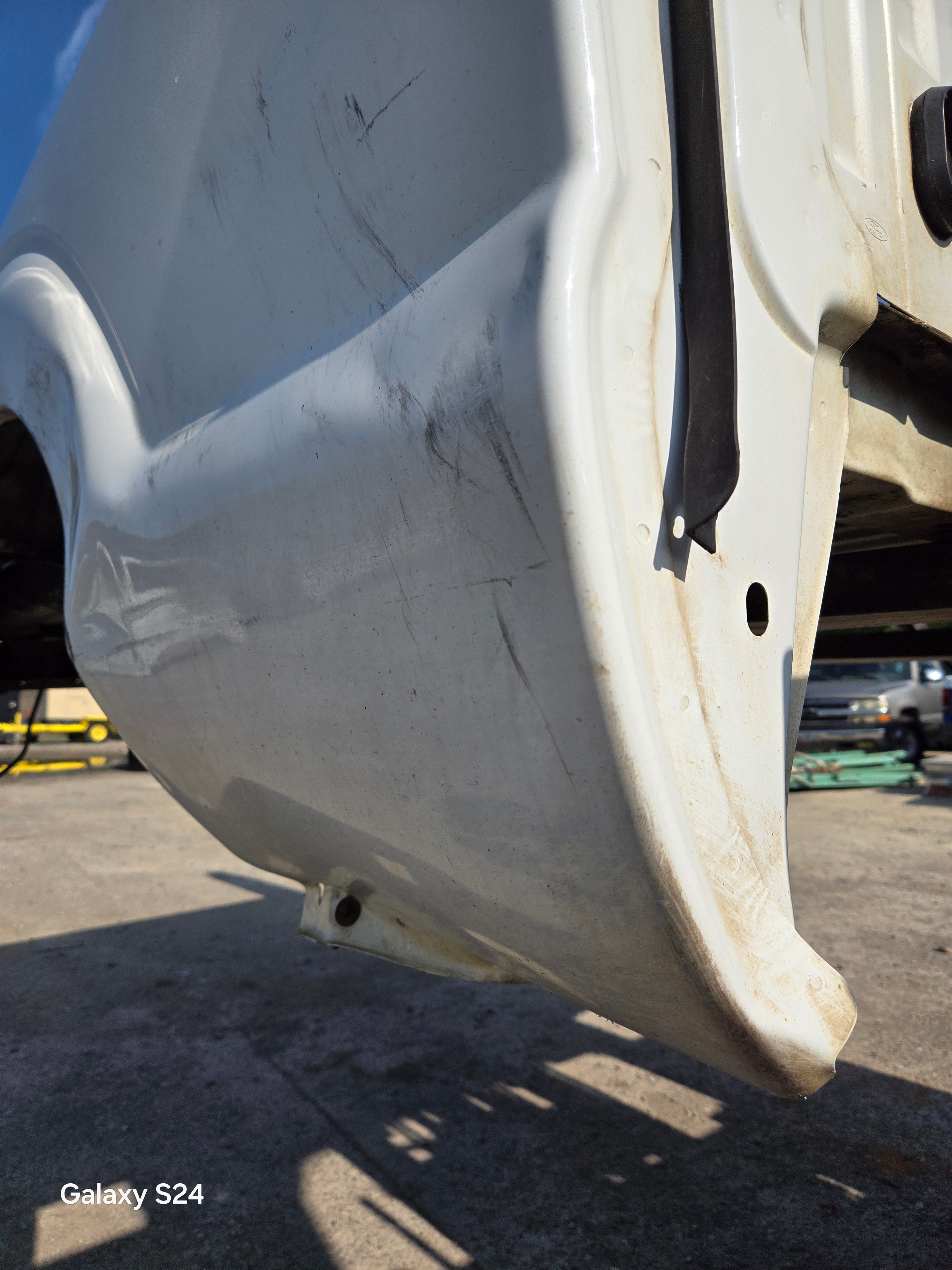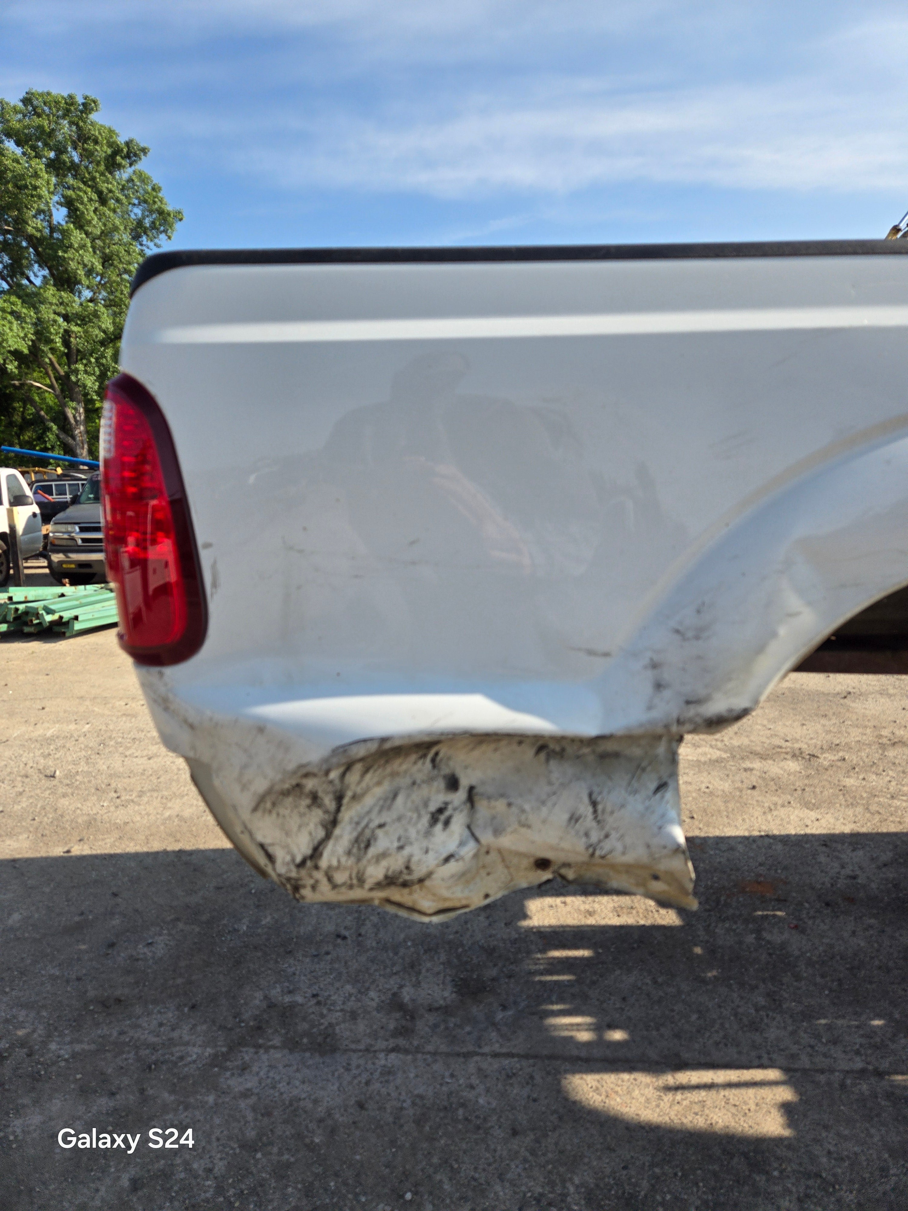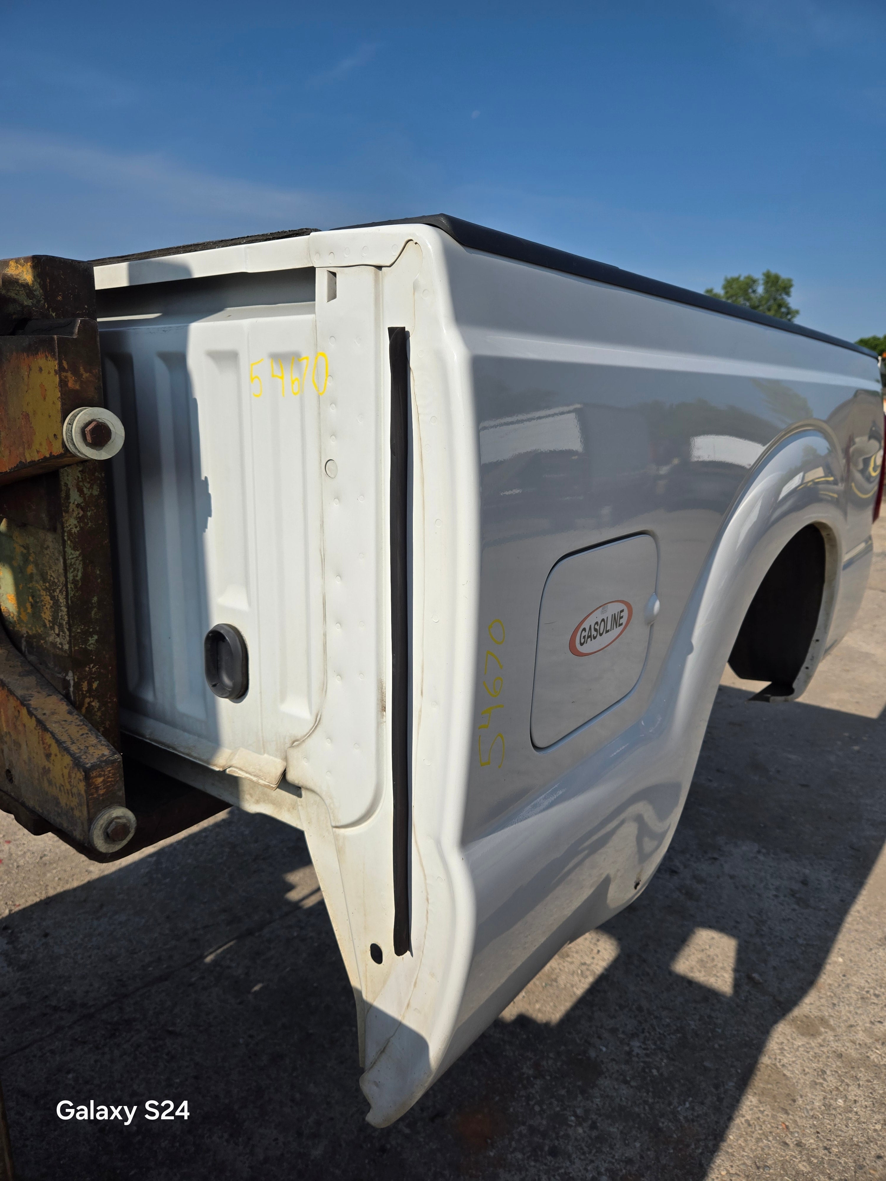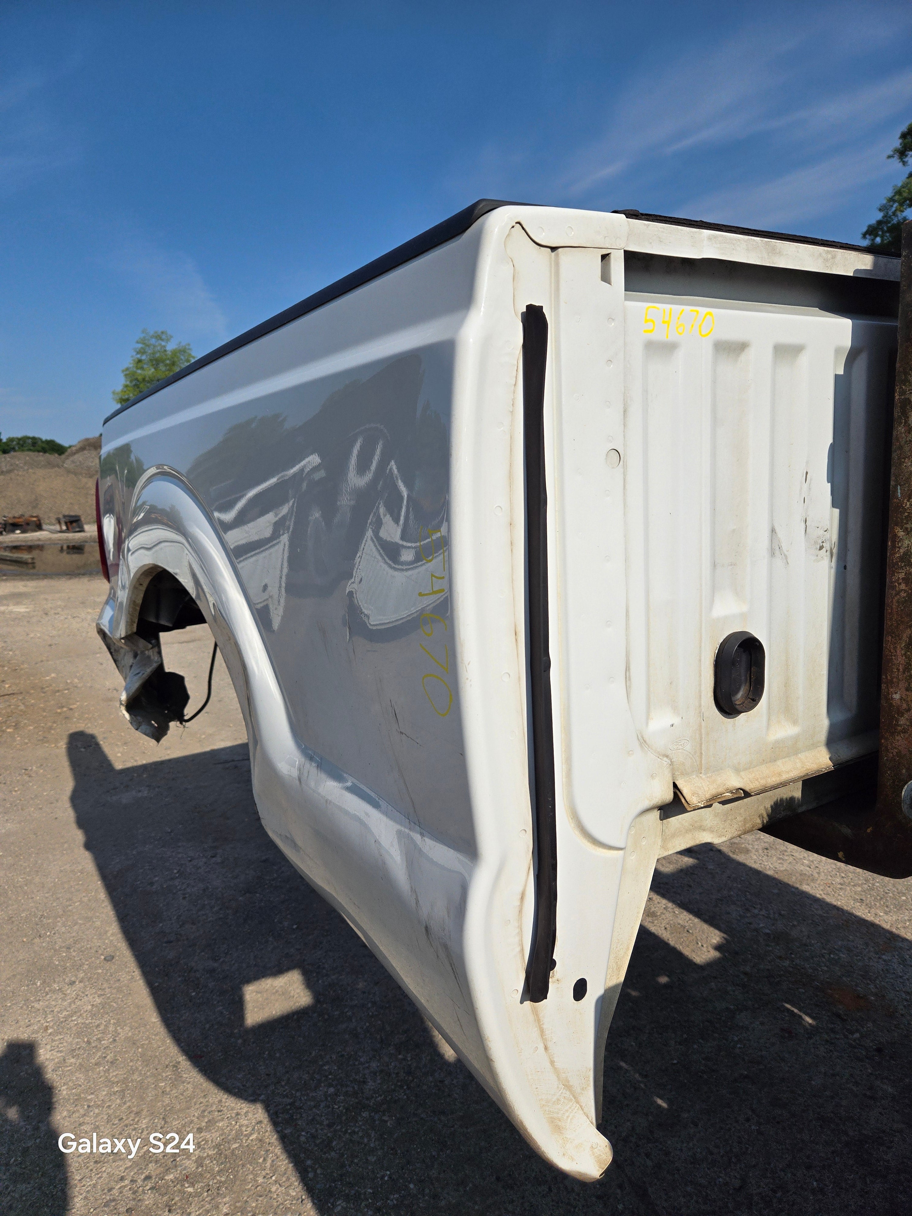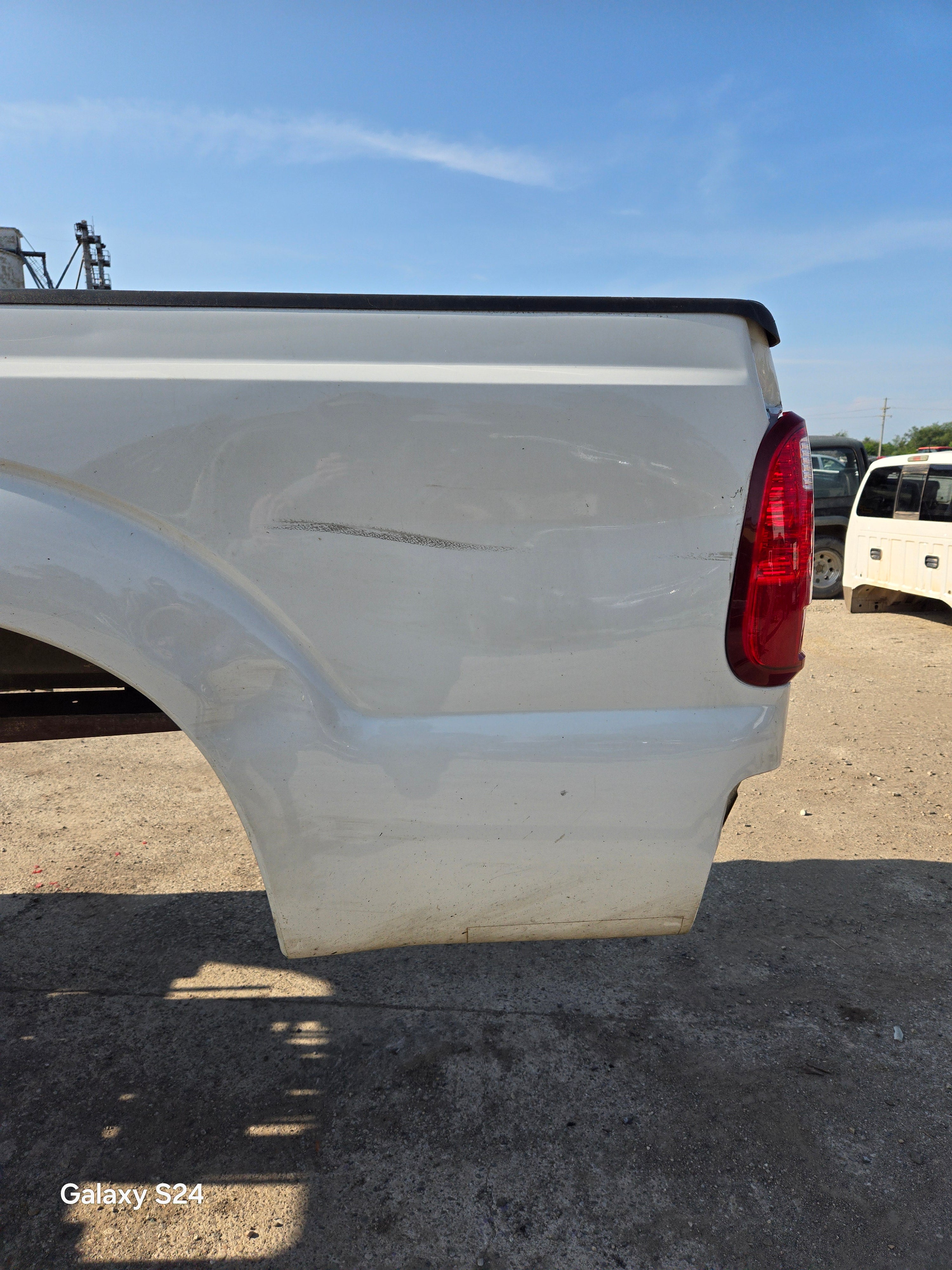 - 1999-2010 Ford F250 F350 Super Duty's with 6' 9" bed, only difference is cosmetically, the flare around the wheel well is rolled slightly different and the fuel door is rectangular on this bed versus round on the 99-10 beds the filler neck still lines up, otherwise they are basically identical between models. The older style tailgate will work on the newer style bed if you swap the driver side hinge (only 2 bolts to swap the hinge, we swap these on the regular). All of the other body lines on the newer style beds match up with the cab of the older trucks perfectly.Â