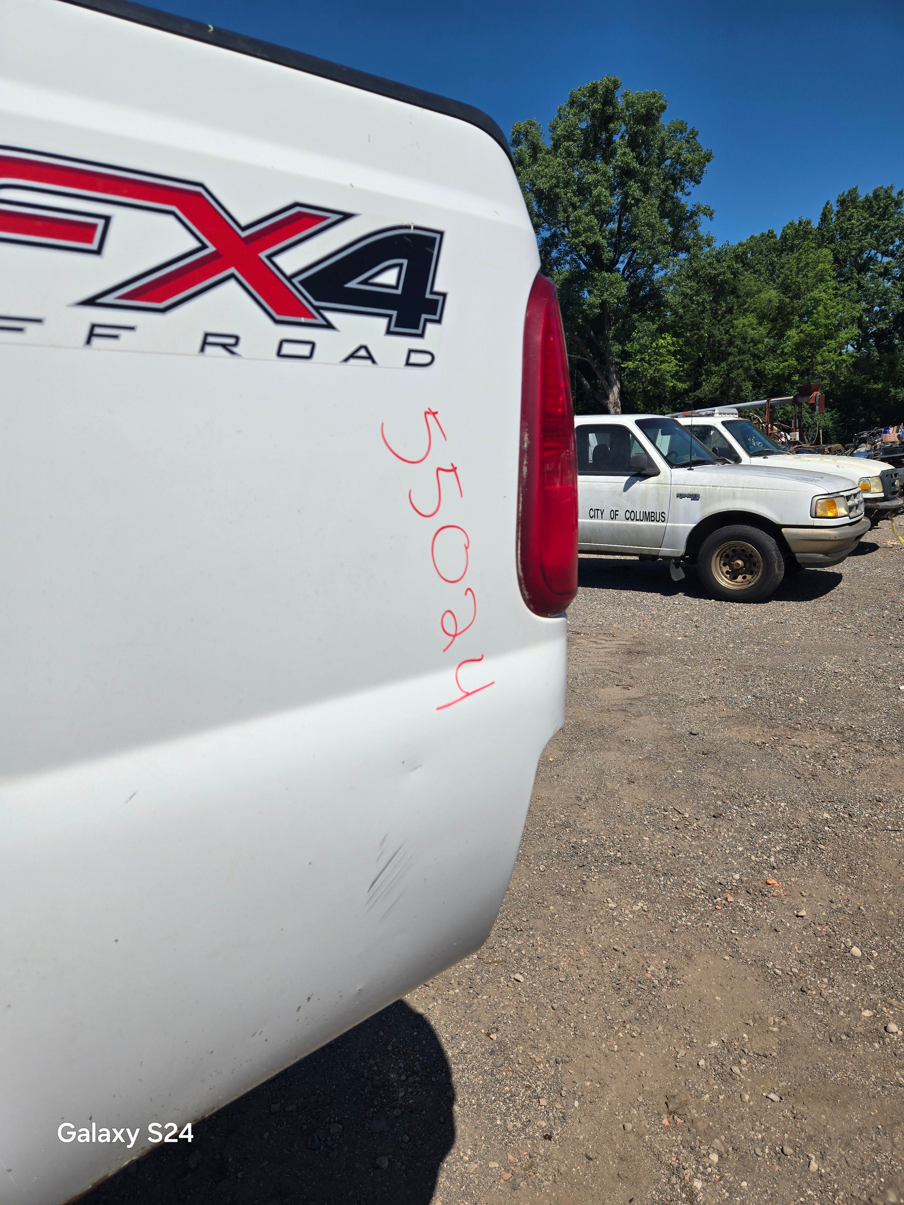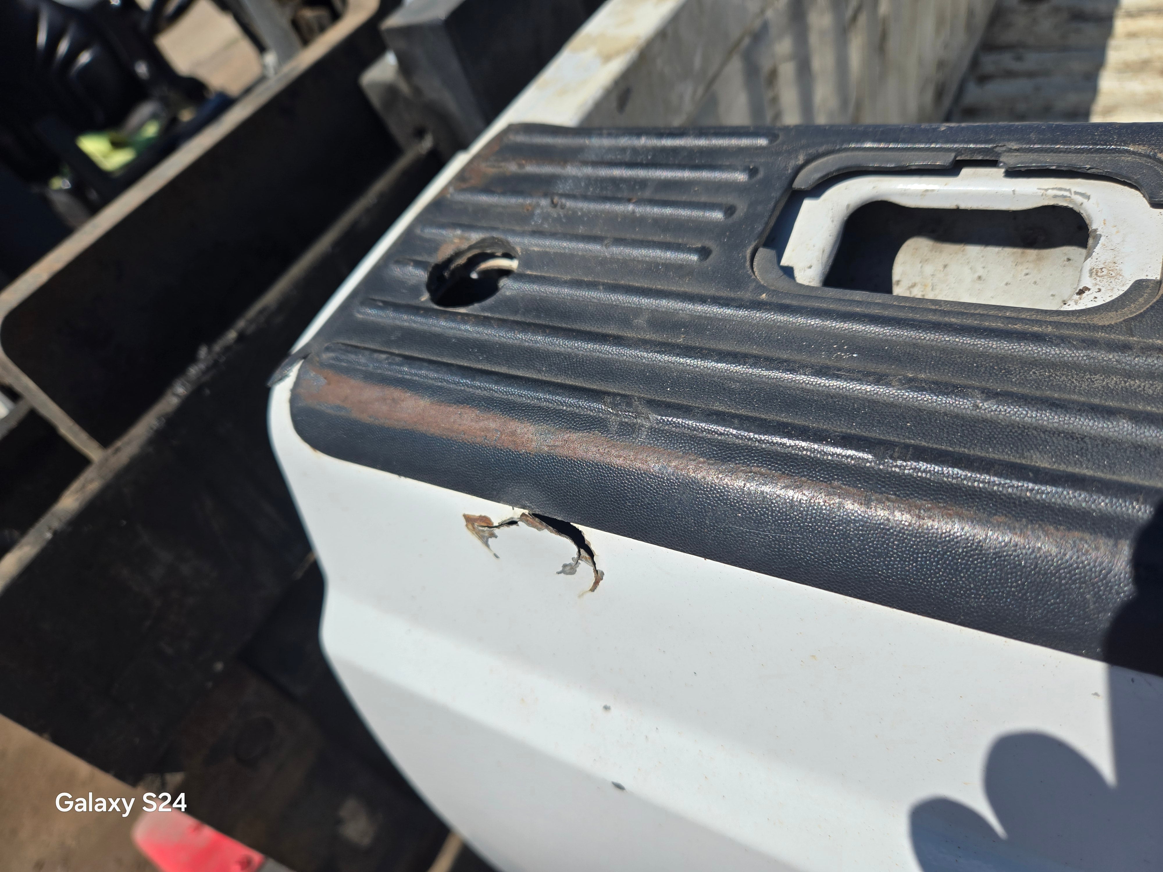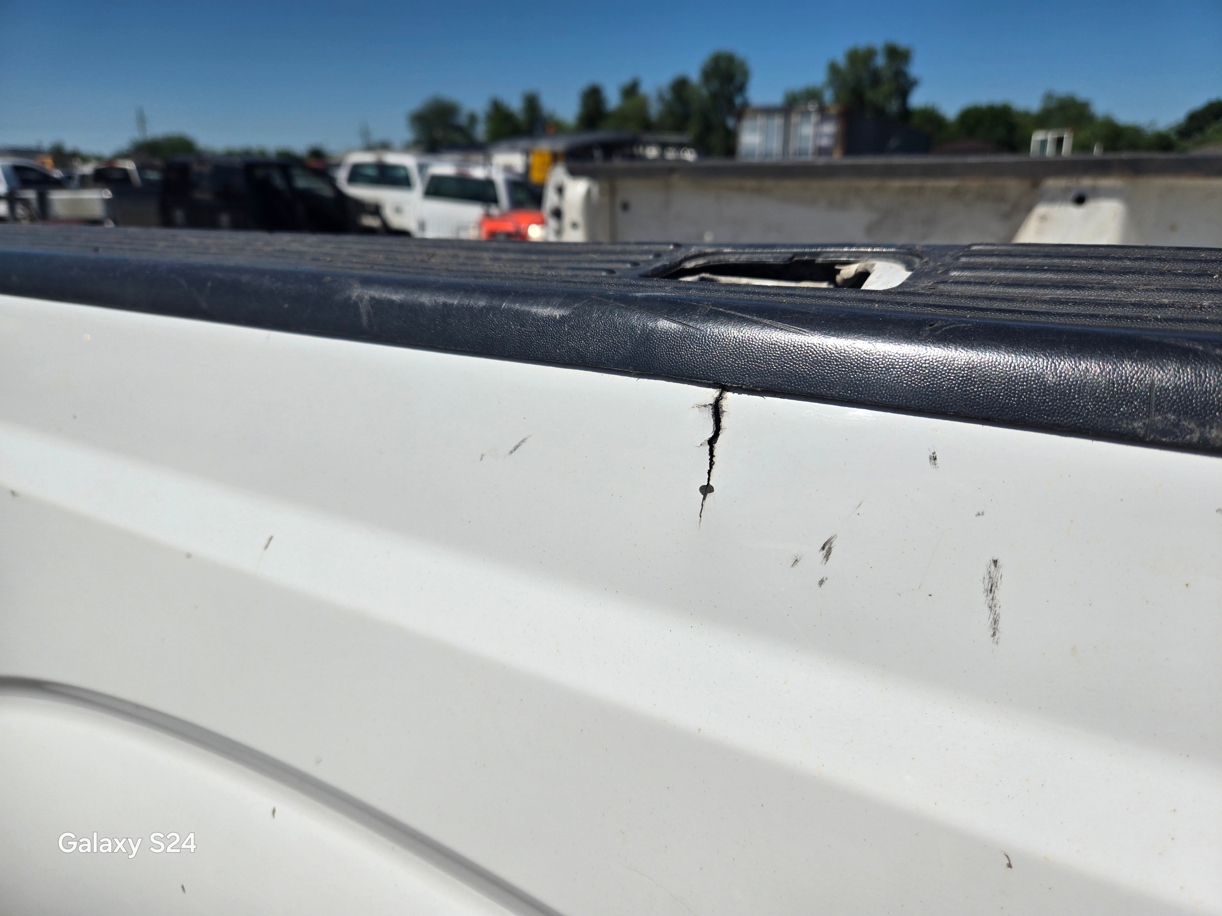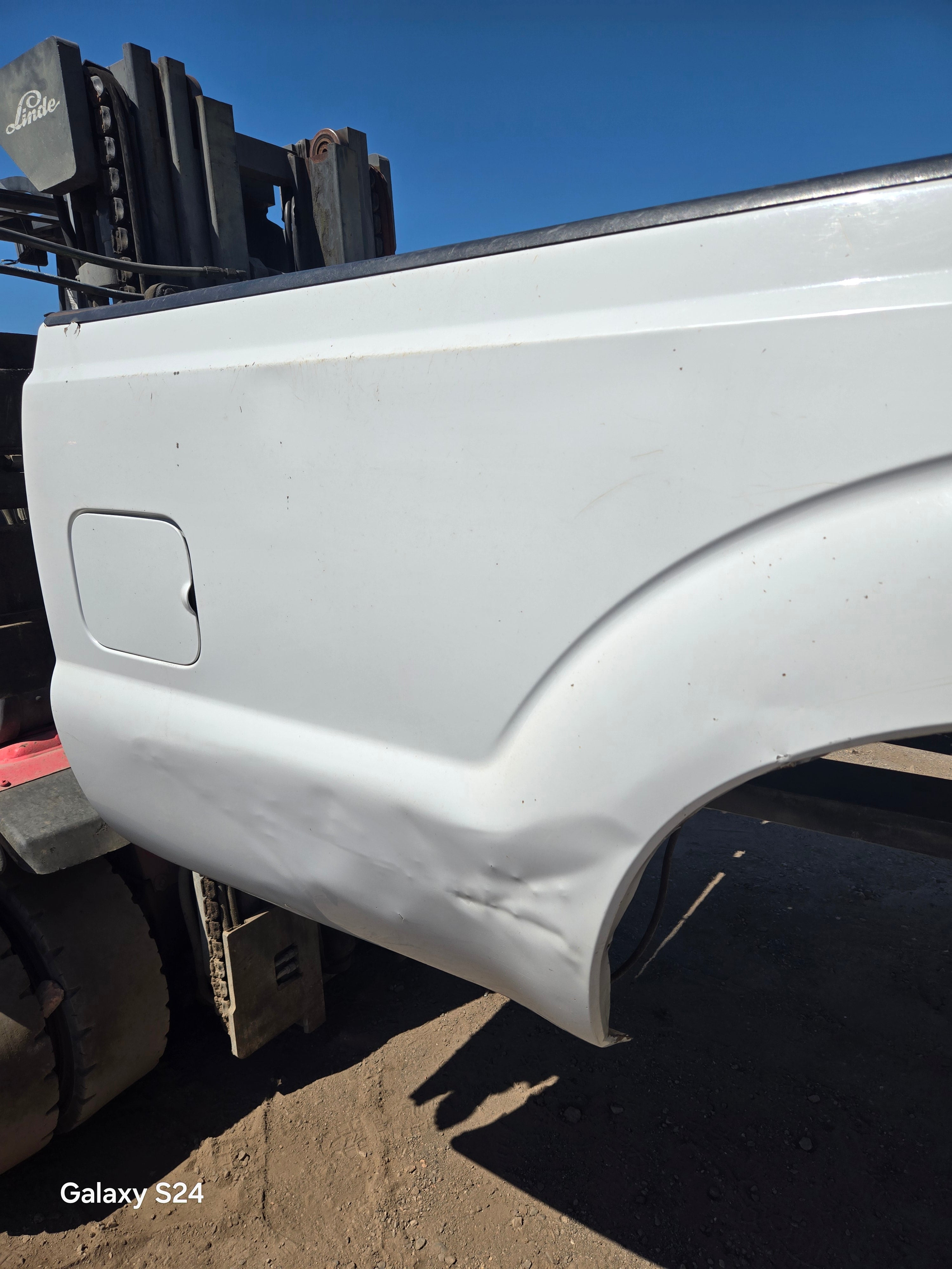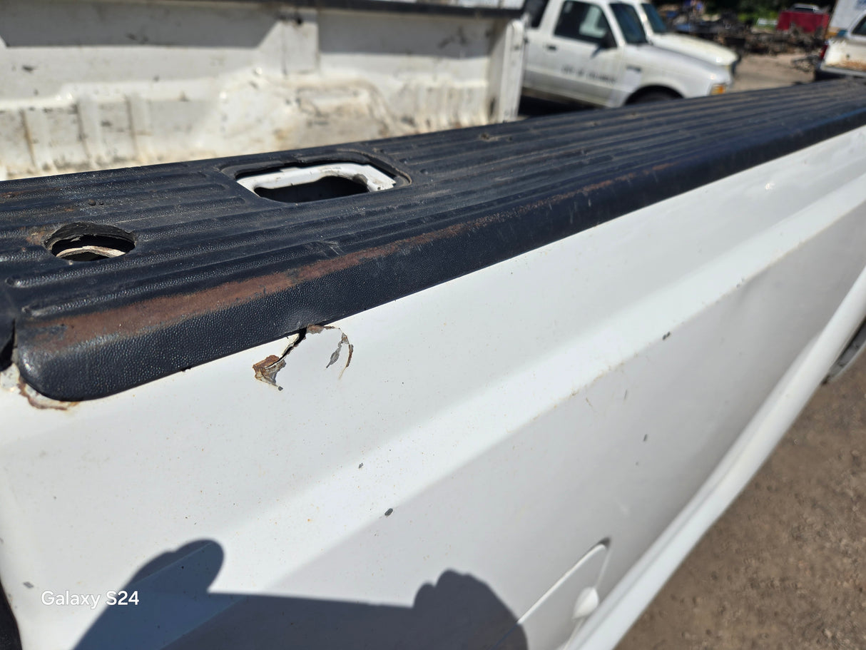 - 1999-2010 Ford F250 F350 Super Duty's with 8' bed, only difference is cosmetically, the flare around the wheel well is rolled slightly different and the fuel door is rectangular on this bed versus round on the 99-10 beds the filler neck still lines up, otherwise they are basically identical between models. The older style tailgate will work on the newer style bed if you swap the driver side hinge (only 2 bolts to swap the hinge, we swap these on the regular). All of the other body lines on the newer style beds match up with the cab of the older trucks perfectly.Â