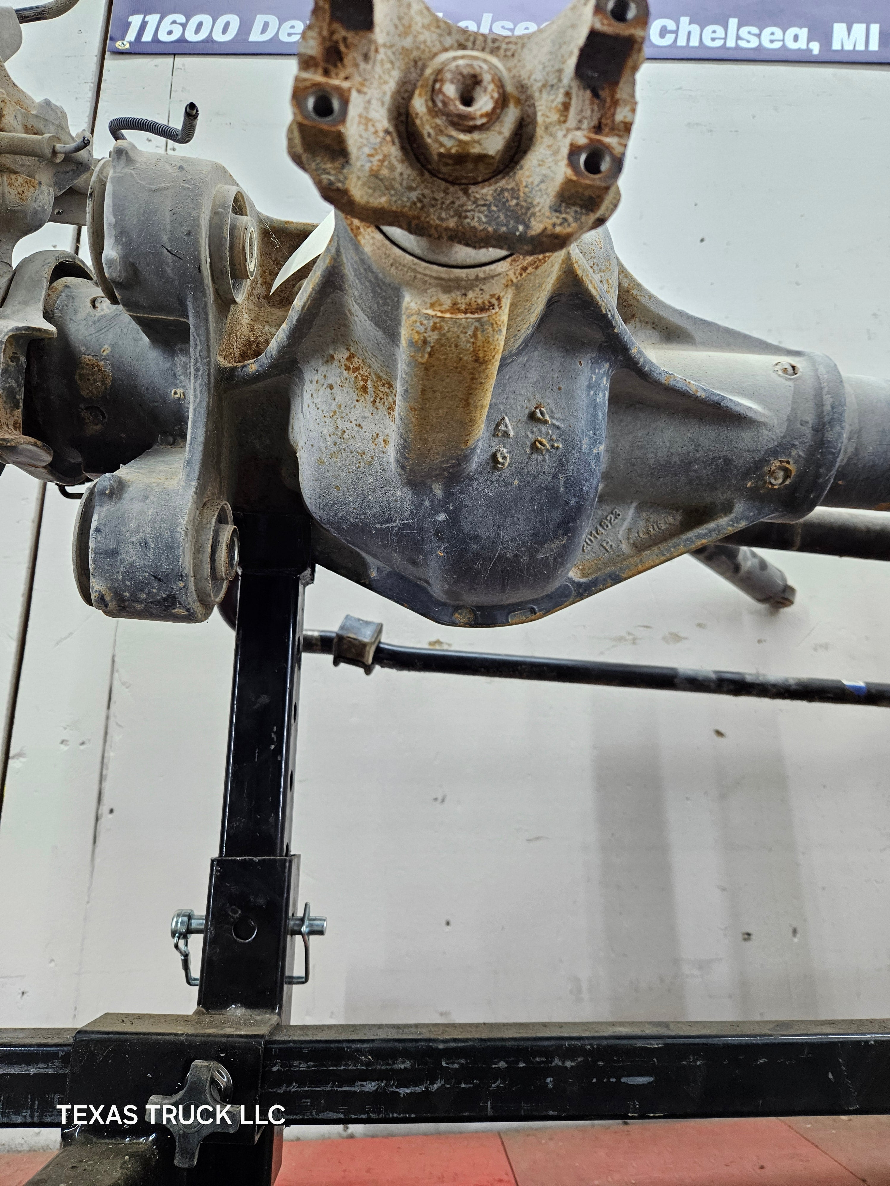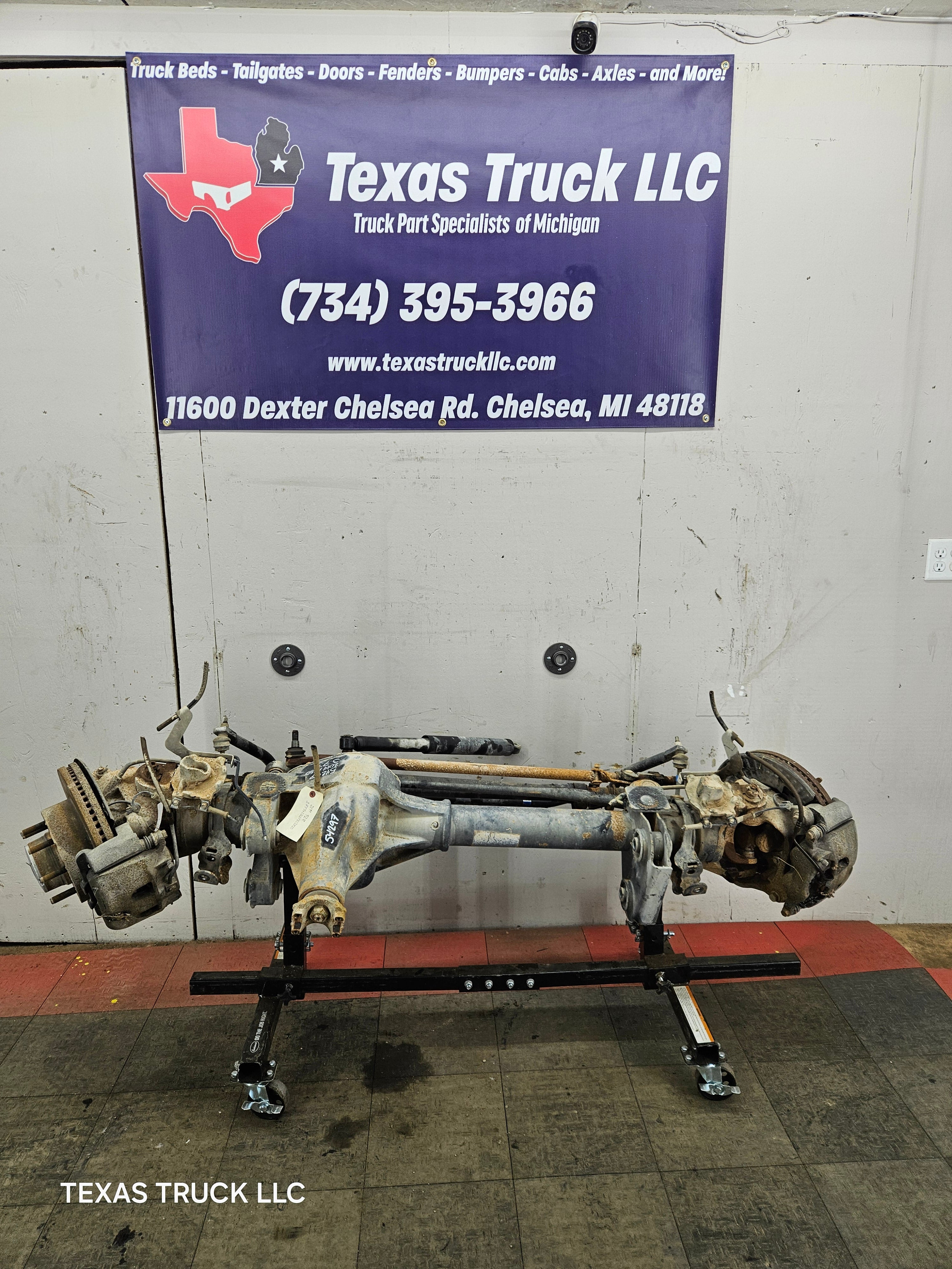 - Ford Super Duty coil over 8 lug, 8 x 170 lug pattern, used, FRONT AXLE with 3.73 gear ratio. Came out of a Texas truck, no rust.