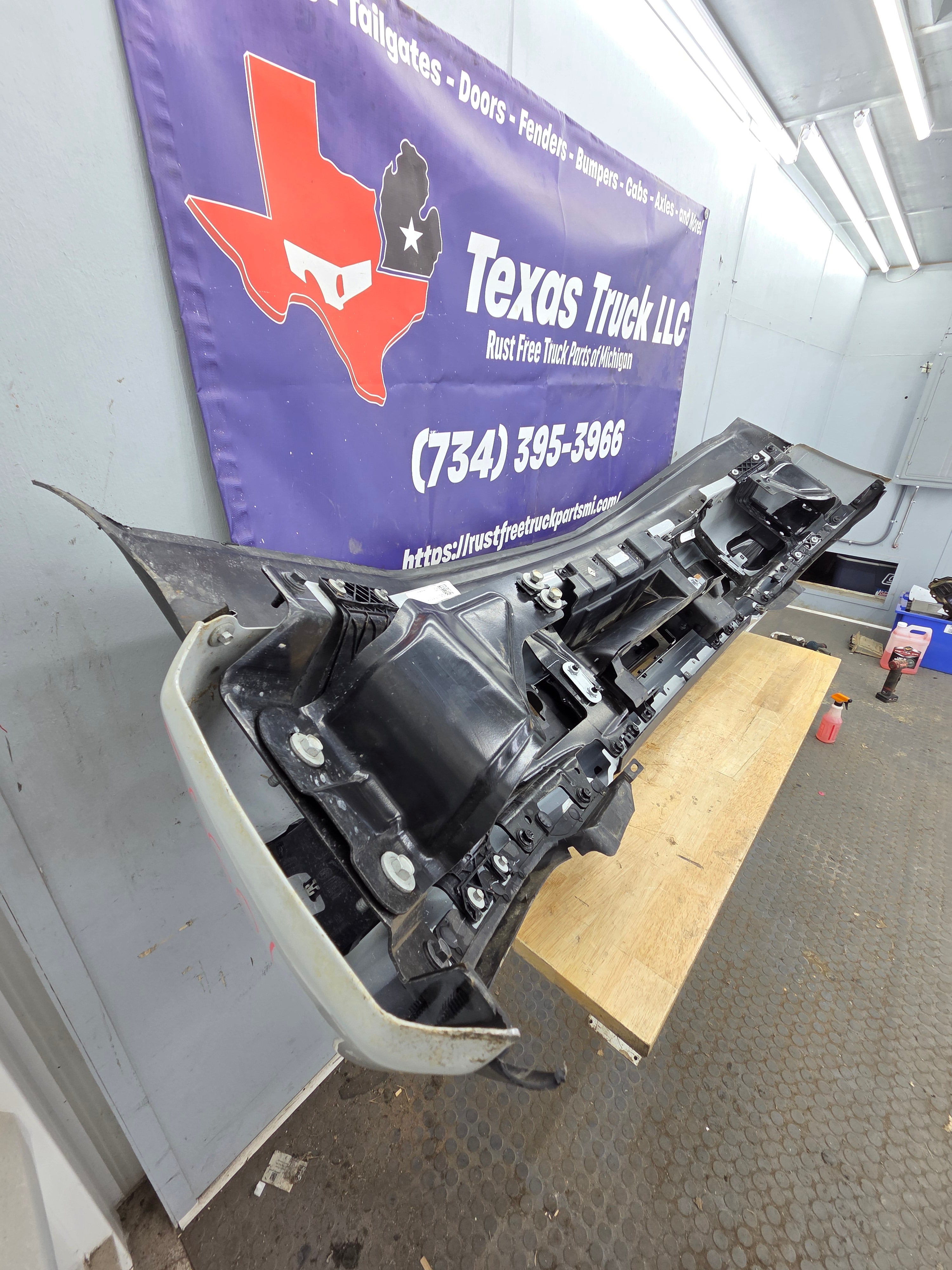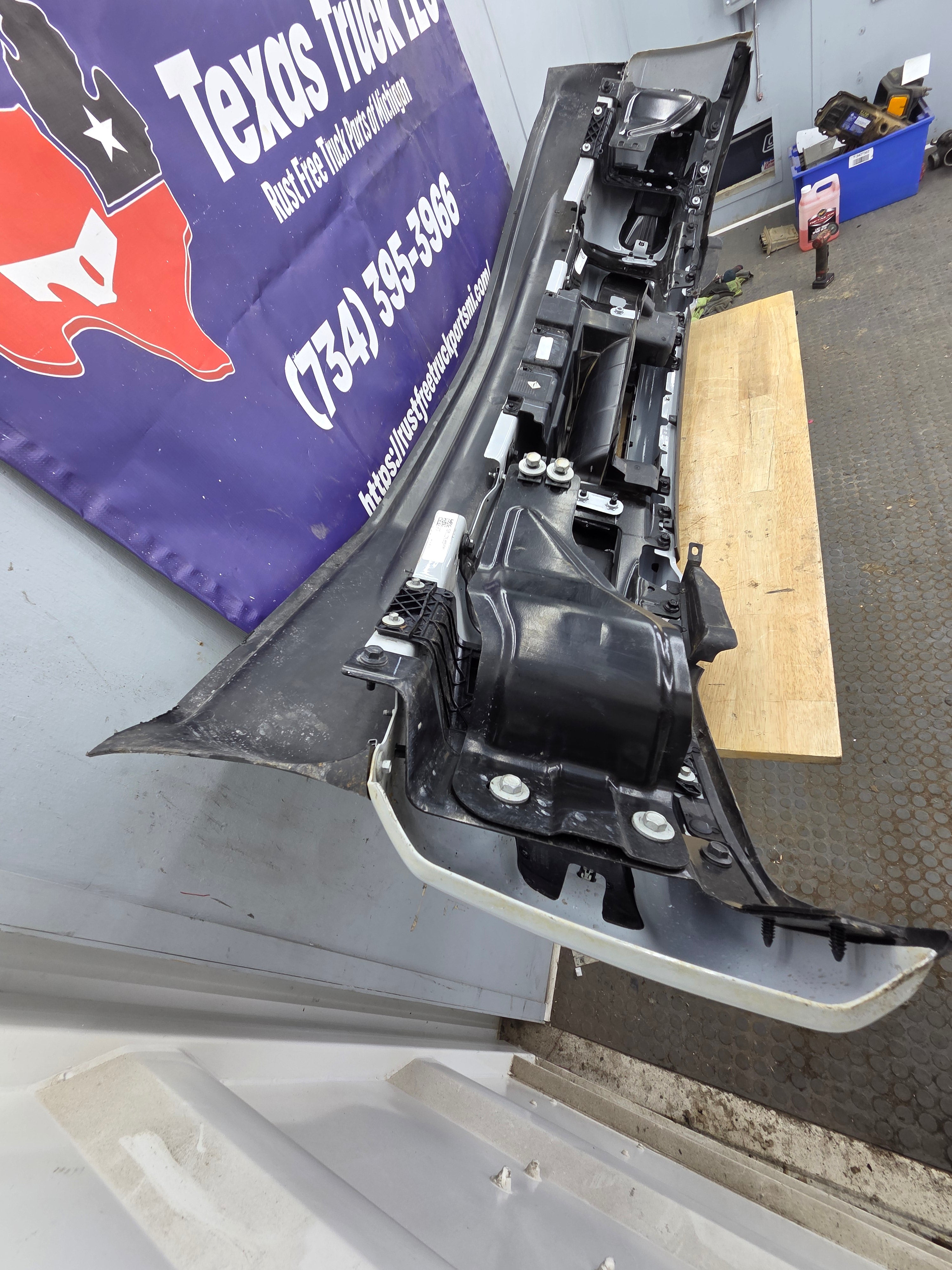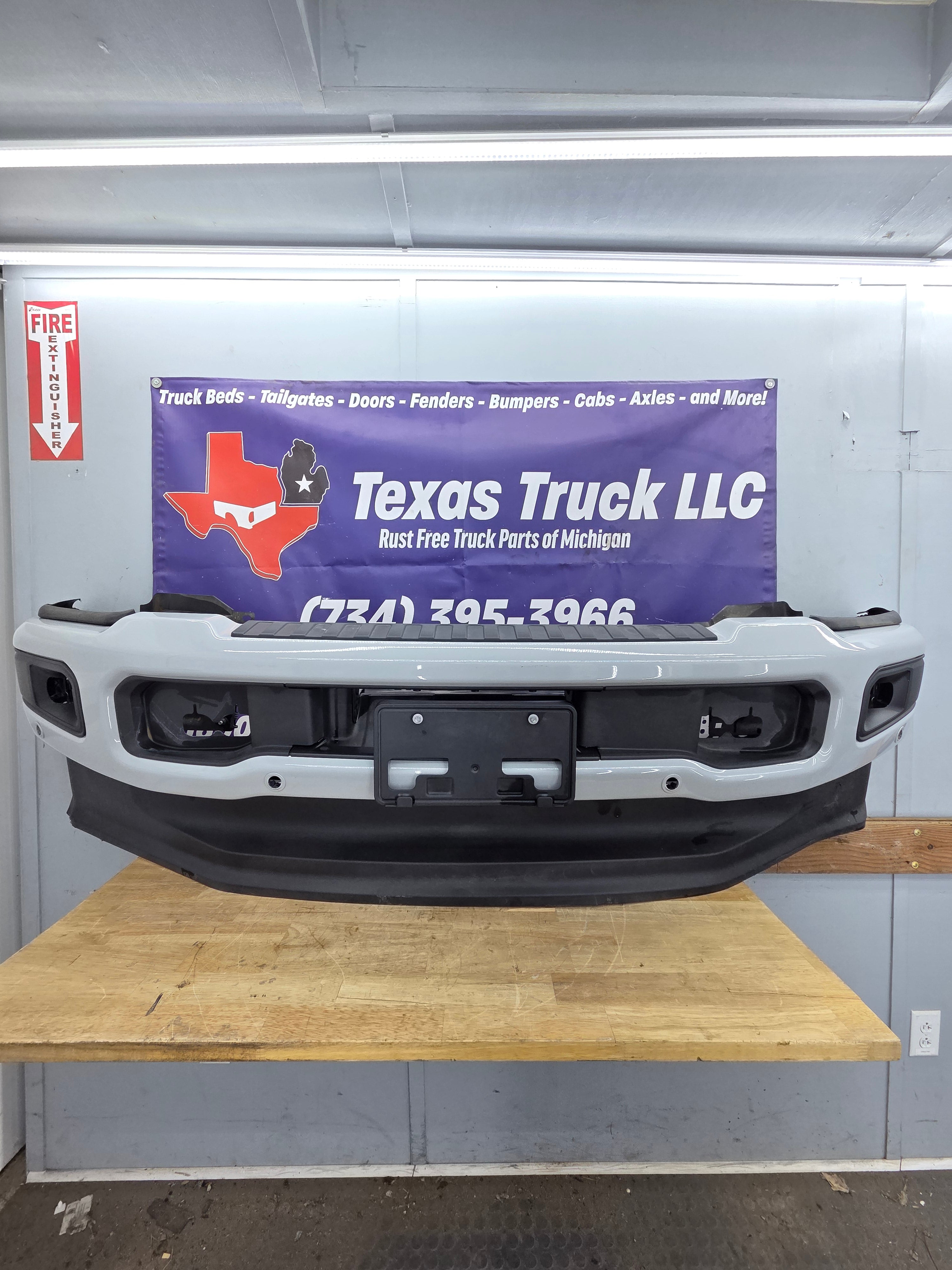 - 2023-2025 Ford F350 Super Duty Bumper, with fog lamps and parking aid sensors.