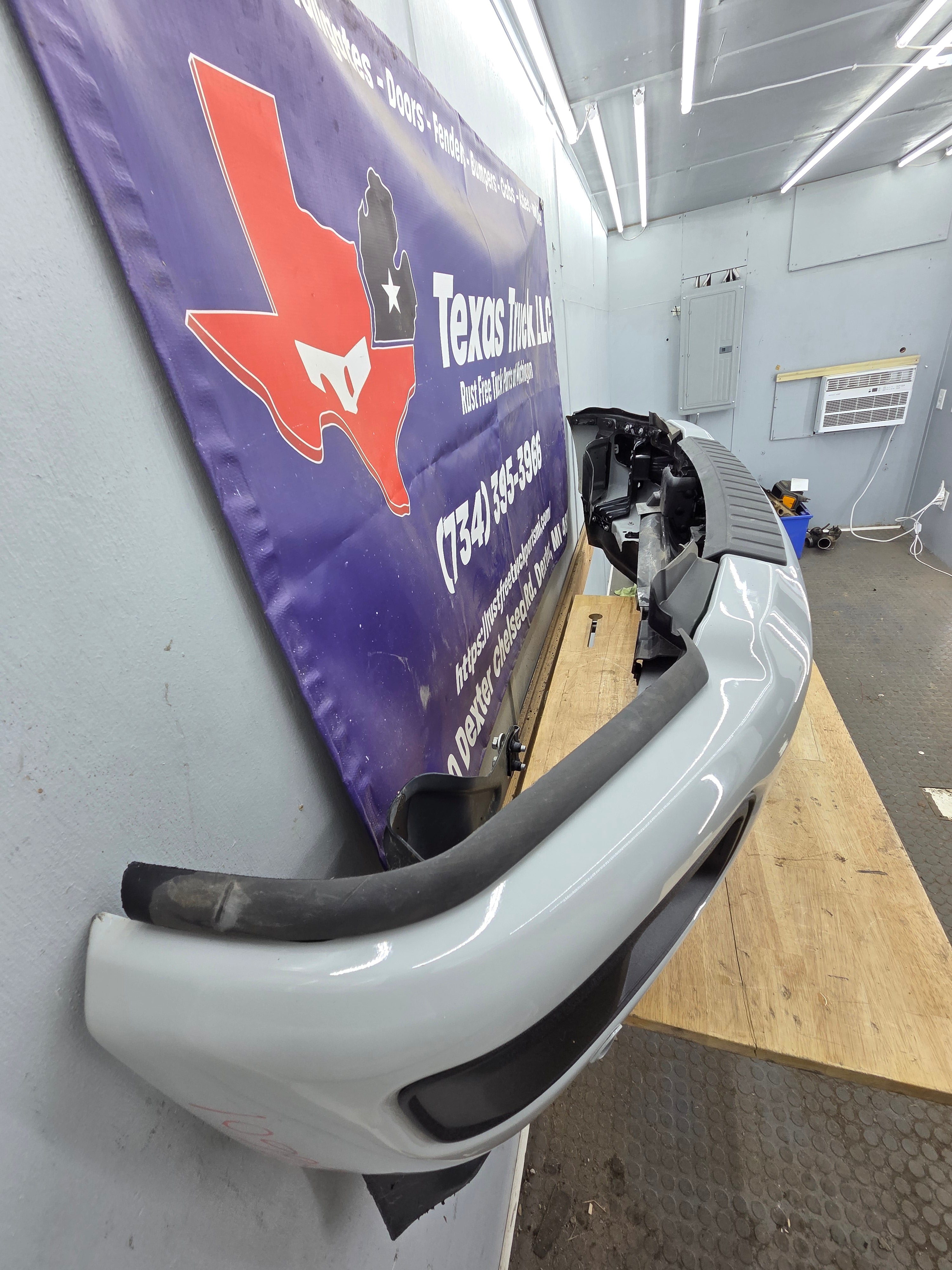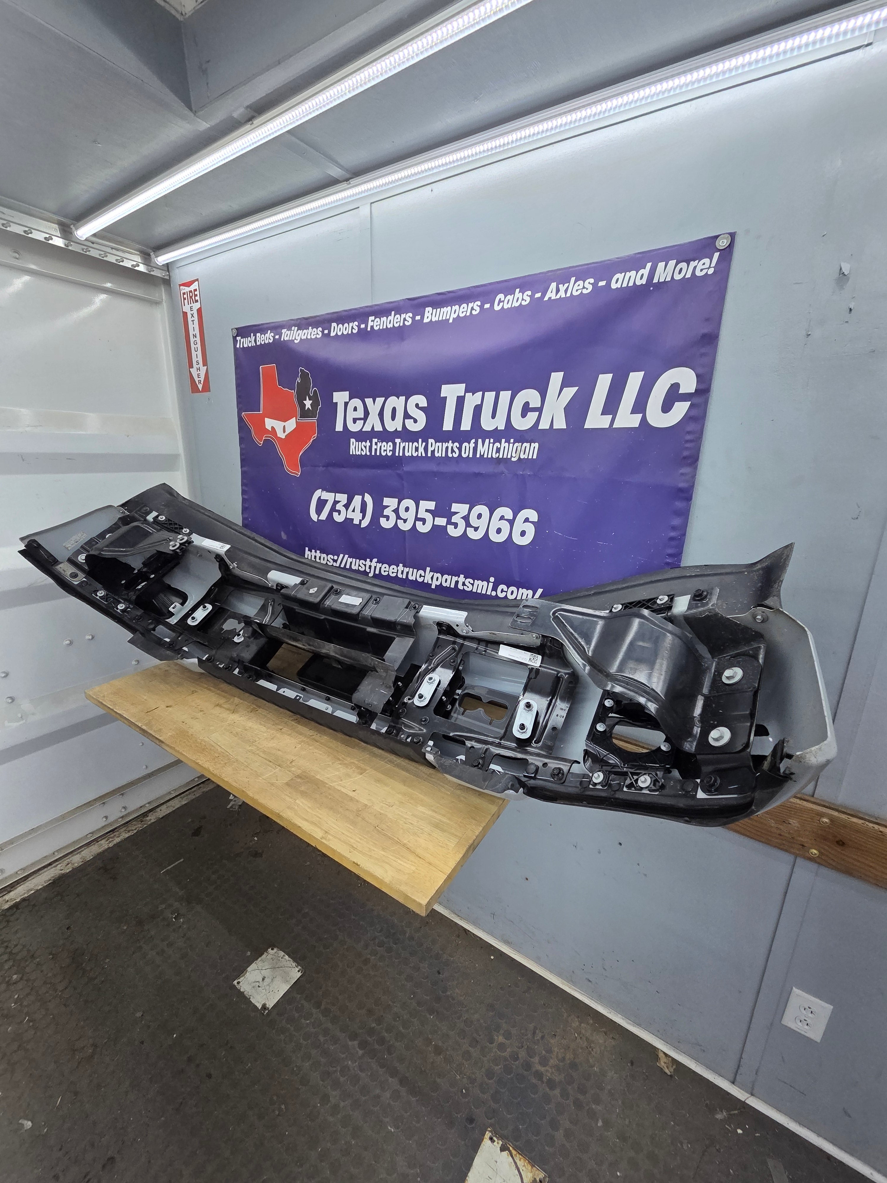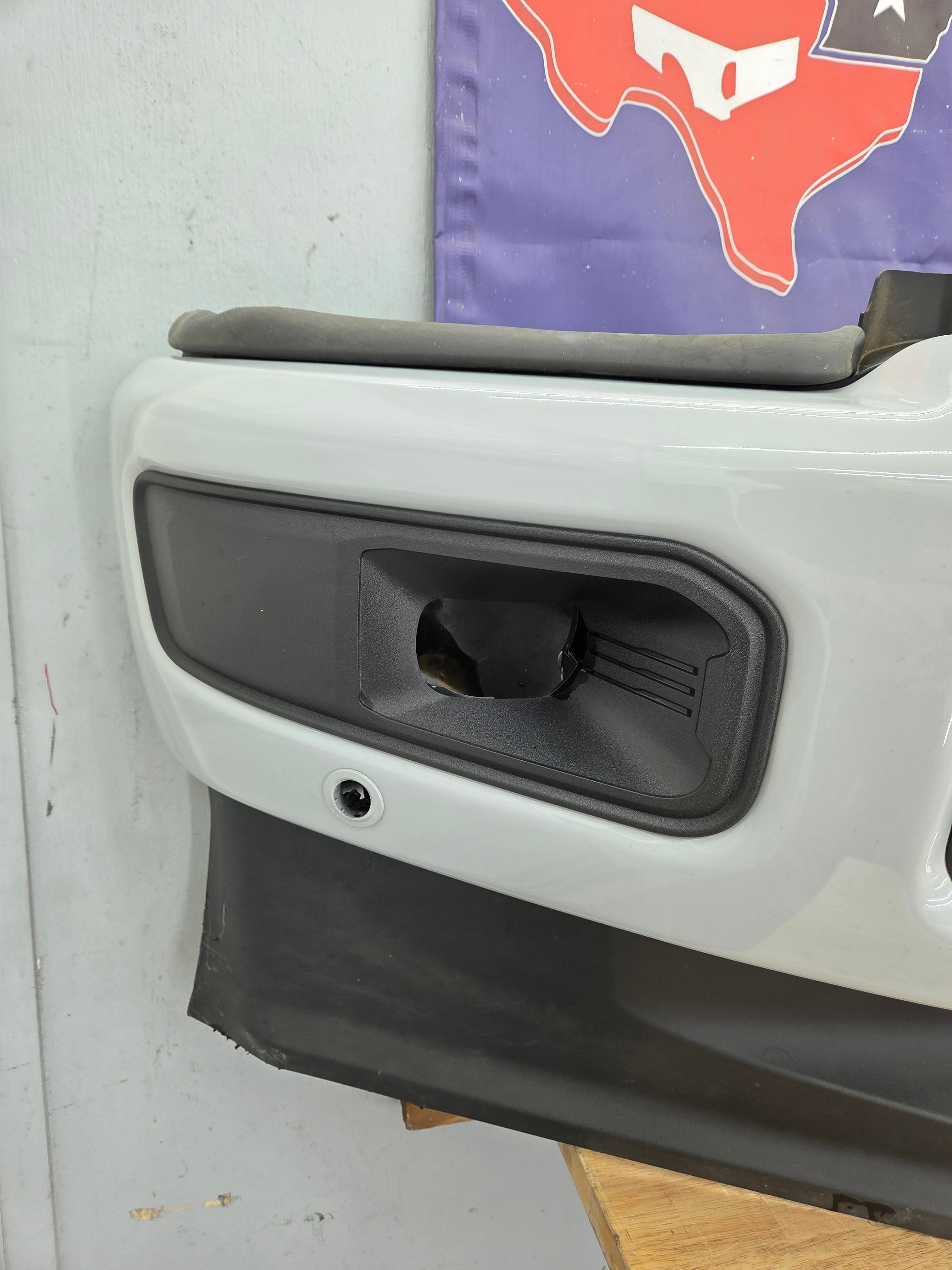 - 2023-2025 Ford F250 Super Duty Bumper, with fog lamps and parking aid sensors.